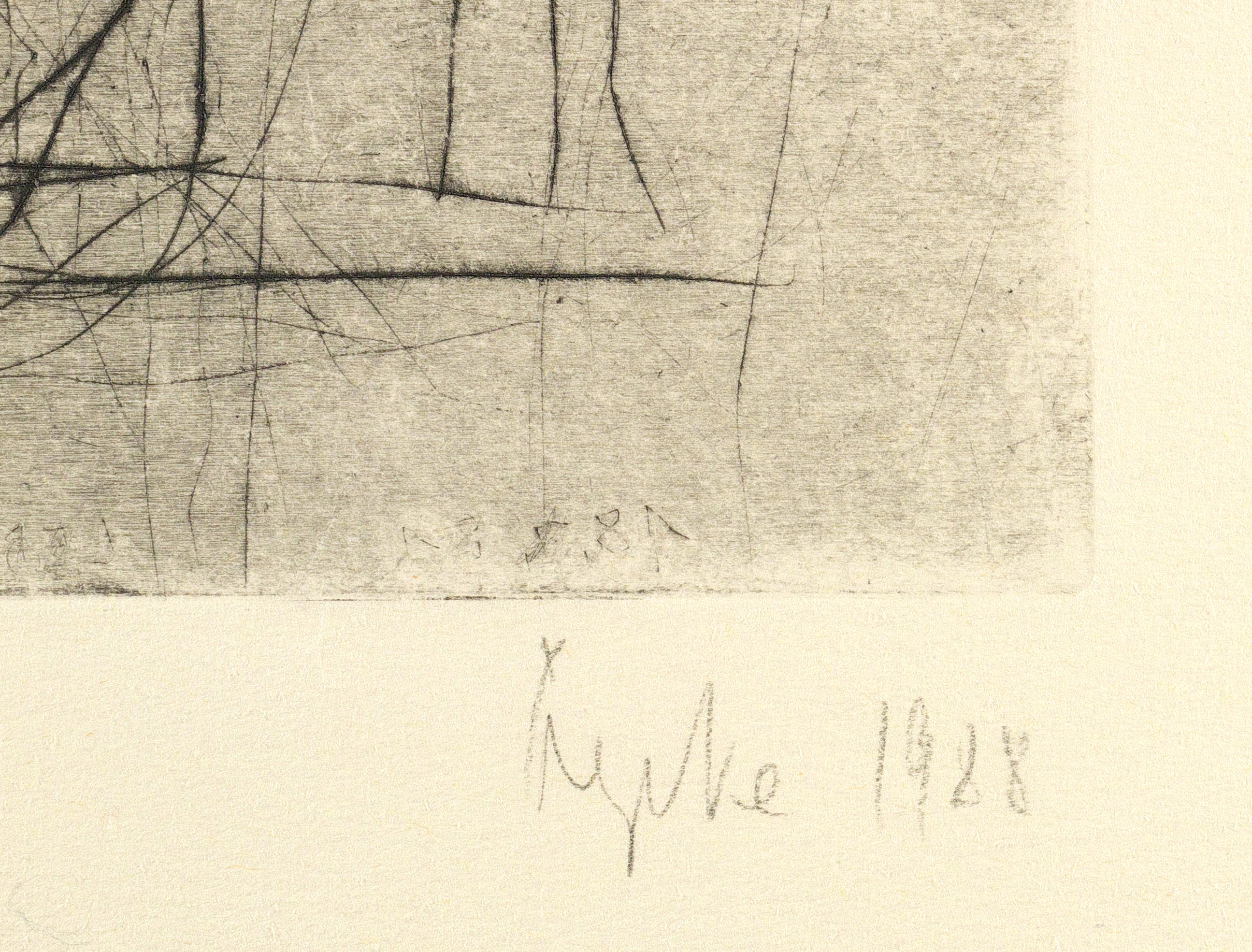 1988. Radierung / Kaltnadel, in Schwarz, mit Plattenton. – Originale Künstlergrafik, von Gerda Lepke. – Zustandsdruck. – 33,5 x 19,0 cm (Darstellung / Platte), 53,5 x 39,5 cm (Blatt).