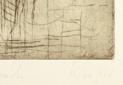 1980. Radierung / Kaltnadel, in Schwarz, mit Plattenton. – Originale Künstlergrafik, von Gerda Lepke. – Probedruck. – 23,3 x 14,8 cm (Darstellung / Platte), 38 x 25 cm (Blatt).