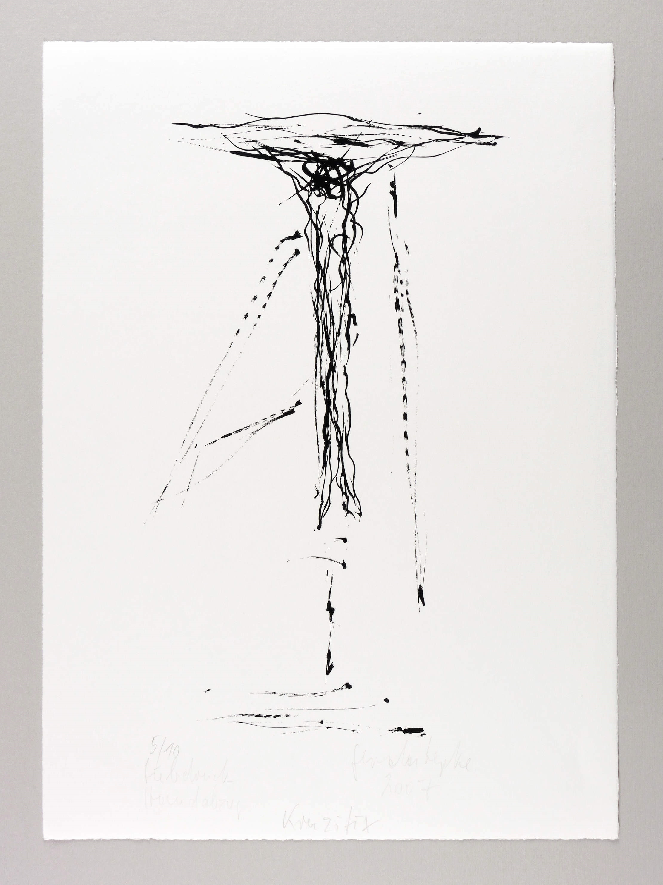 2007. Siebdruck / Serigrafie, in Schwarz, auf feinem weißem Zerkall. – Originale Künstlergrafik, von Gerda Lepke. – Auflage Exemplar Nr. 5/10. – 42,0 x 24,6 cm (Darstellung / Druckbild), 54 x 39 cm (Blatt).