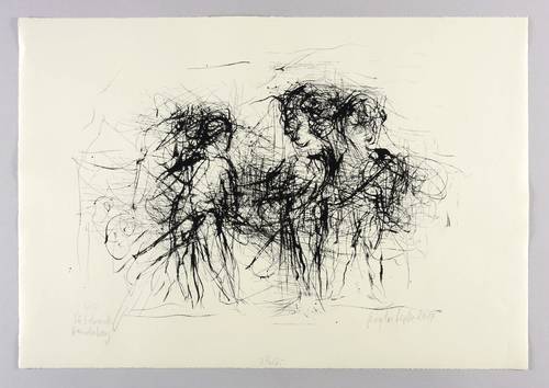 Rechts unten signiert und datiert: ″Gerda Lepke 2014″. Links unten Auflagen- und Technikbezeichnung: ″2/12 / Siebdruck″. Darunter bezeichnet: ″Handabzug″. Am Blattrand unten mittig Titel: ″3 Putti″. Wasserzeichen von Zerkall. – Ohne Mängel. Sehr guter Zustand.