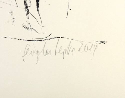 2014. Siebdruck / Serigrafie, in Schwarz, auf feinem gelbem Zerkall-Bütten. – Originale Künstlergrafik, von Gerda Lepke. – Auflage Exemplar Nr. 2/12. – 43,7 x 60,8 cm (Darstellung / Druckbild), 54 x 77 cm (Blatt).