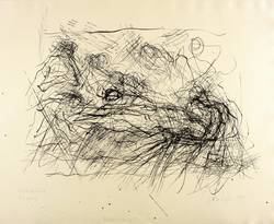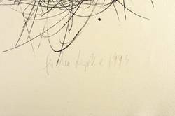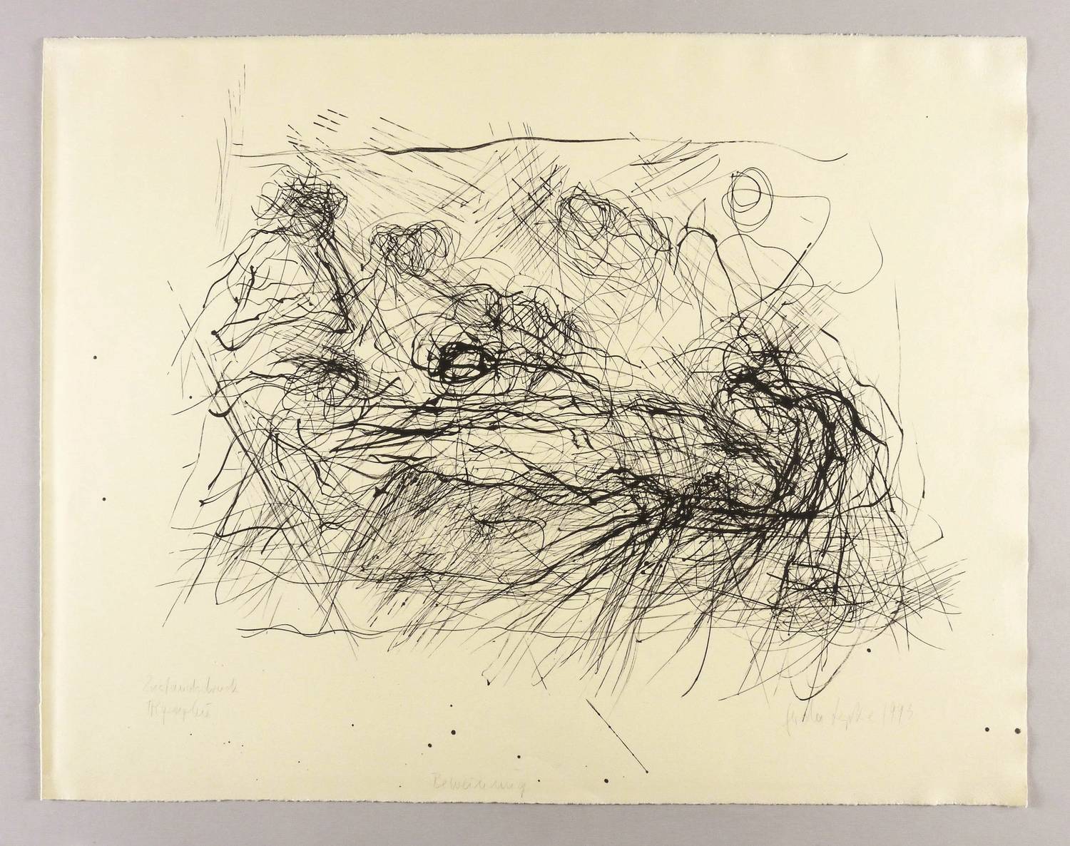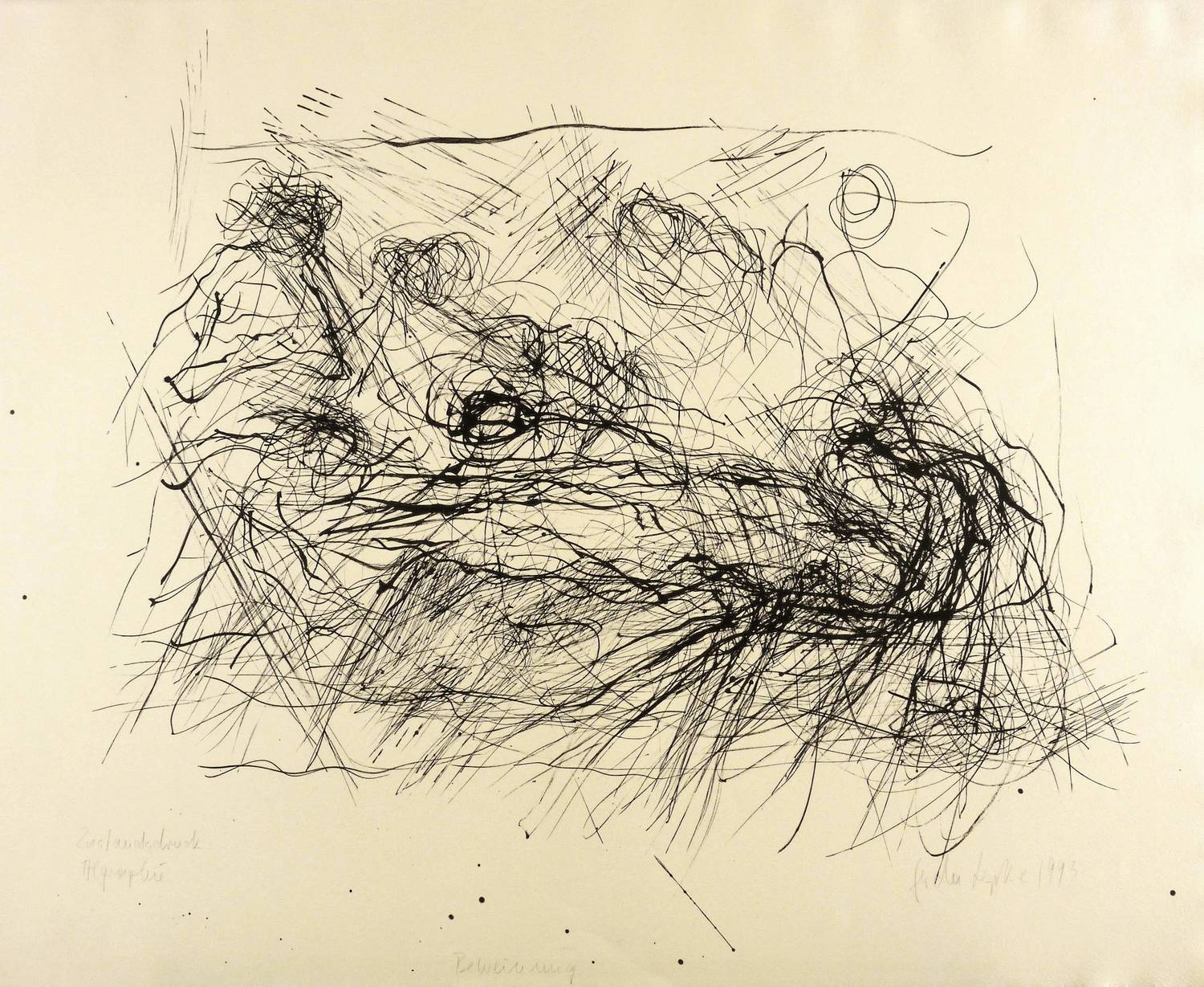 1993. Algrafie / Pinselalgrafie, in Schwarz, auf rauem gelbem Velin. – Originale Künstlergrafik, von Gerda Lepke. – Probedruck. – 56,9 x 73,2 cm (Darstellung / Druckbild), 61 x 78 cm (Blatt).
