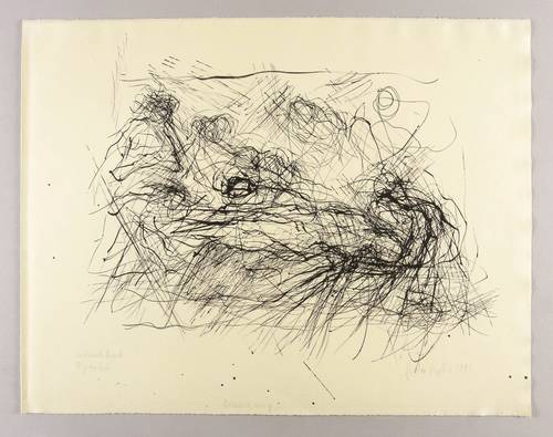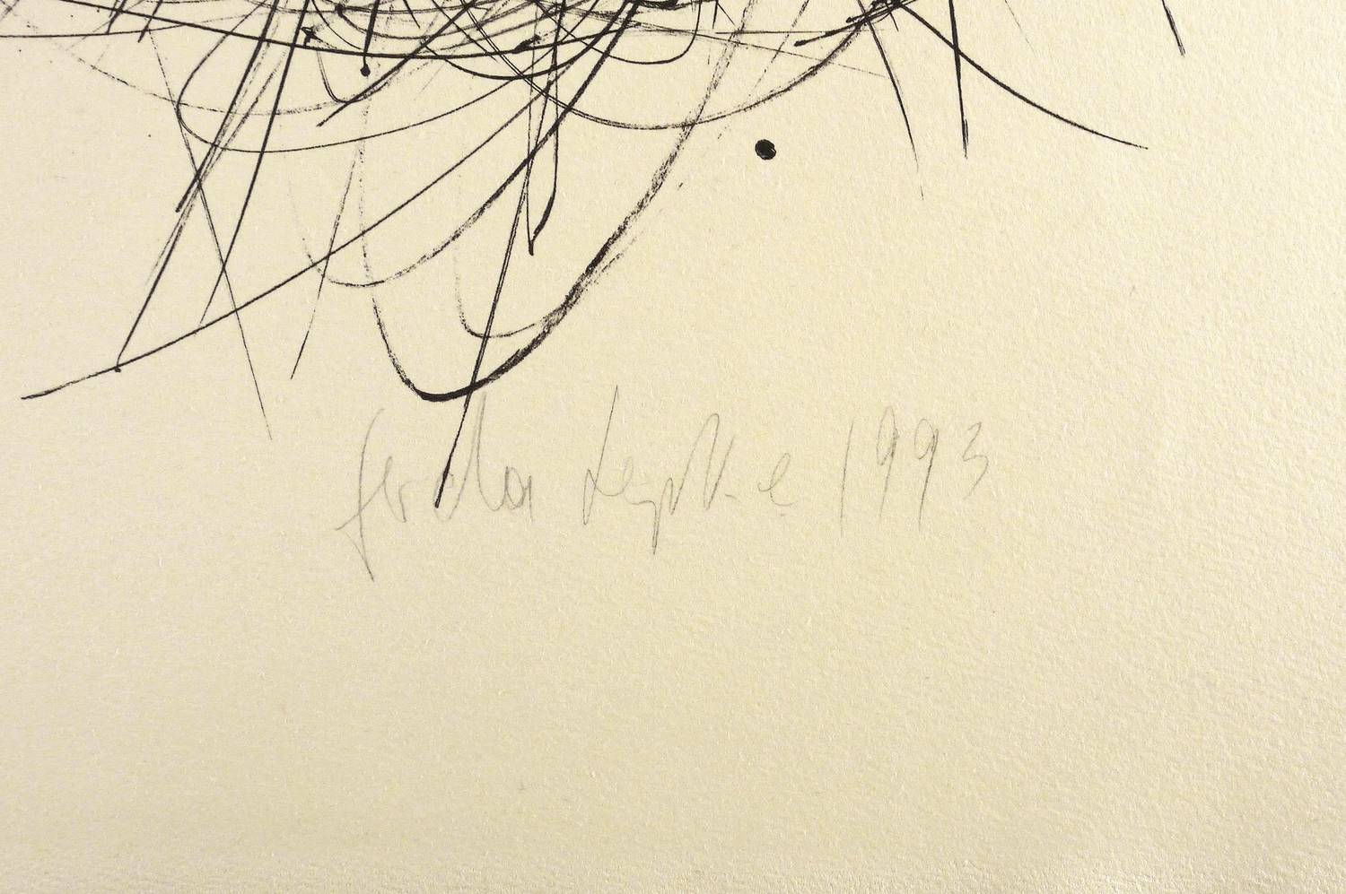 Rechts unten in Bleistift signiert und datiert: ″Gerda Lepke 1993″. Links Auflagen- und Technikbezeichnung: ″Zustandsdruck / Algraphie″. Mittig im unteren Rand Titel: ″Beweinung″. – Provenienz: Sammlung Dr. Ingrid und Prof. Dr. Albrecht Scholz, Dresden. – Linker Blattrand unscheinbar gewellt. Guter Zustand.