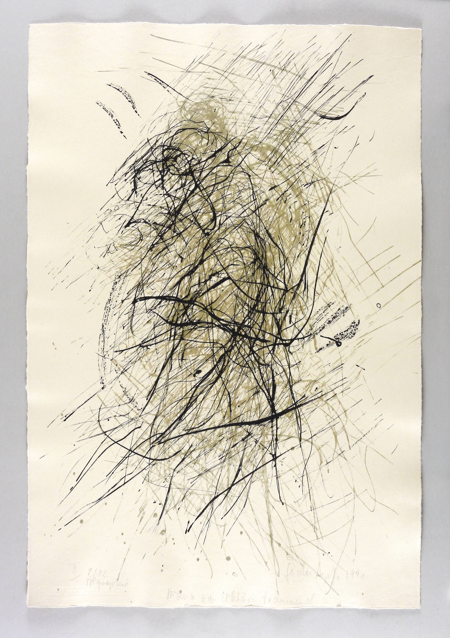 1991. Farbalgrafie / Pinselalgrafie, in Ocker & Schwarz, auf kräftigem chamois Hahnemühle. – Originale Künstlergrafik, von Gerda Lepke. – Auflage Exemplar Nr. 2/12. – 79 x 54 cm (Blatt), 76,0 x 52,0 cm (Darstellung / Druckbild).