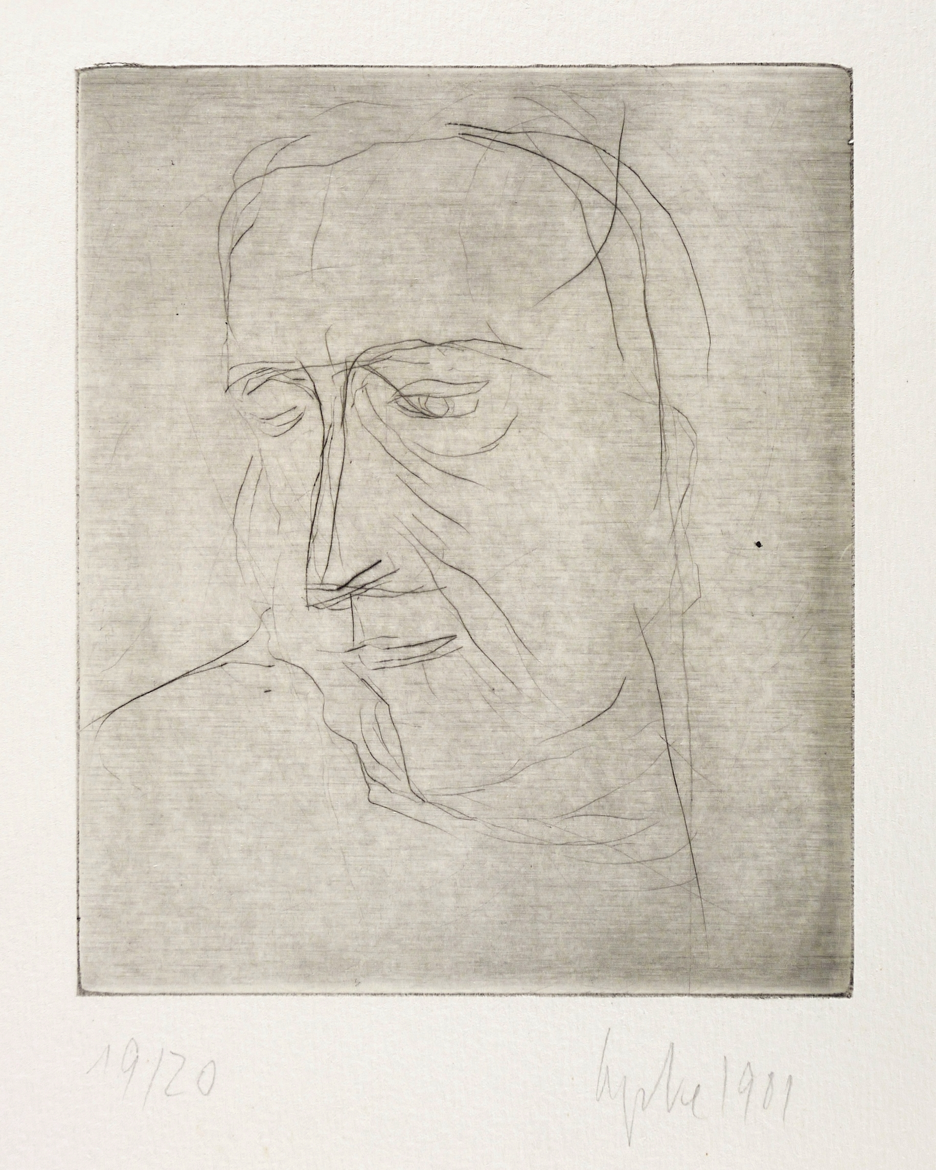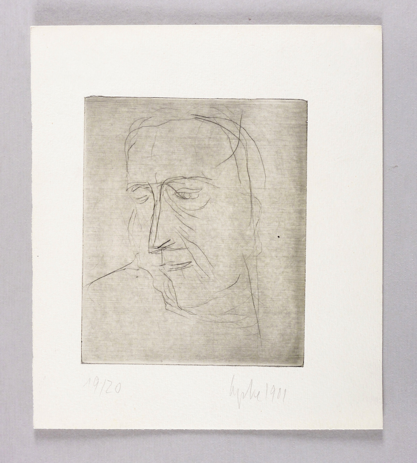 1981. Radierung / Kaltnadel, in Schwarz, mit Plattenton, auf hellchamois Weißenborn. – Originale Künstlergrafik, von Gerda Lepke. – Auflage Exemplar Nr. 19/20. – 16,5 x 13,7 cm (Darstellung / Platte), 25 x 22 cm (Blatt).