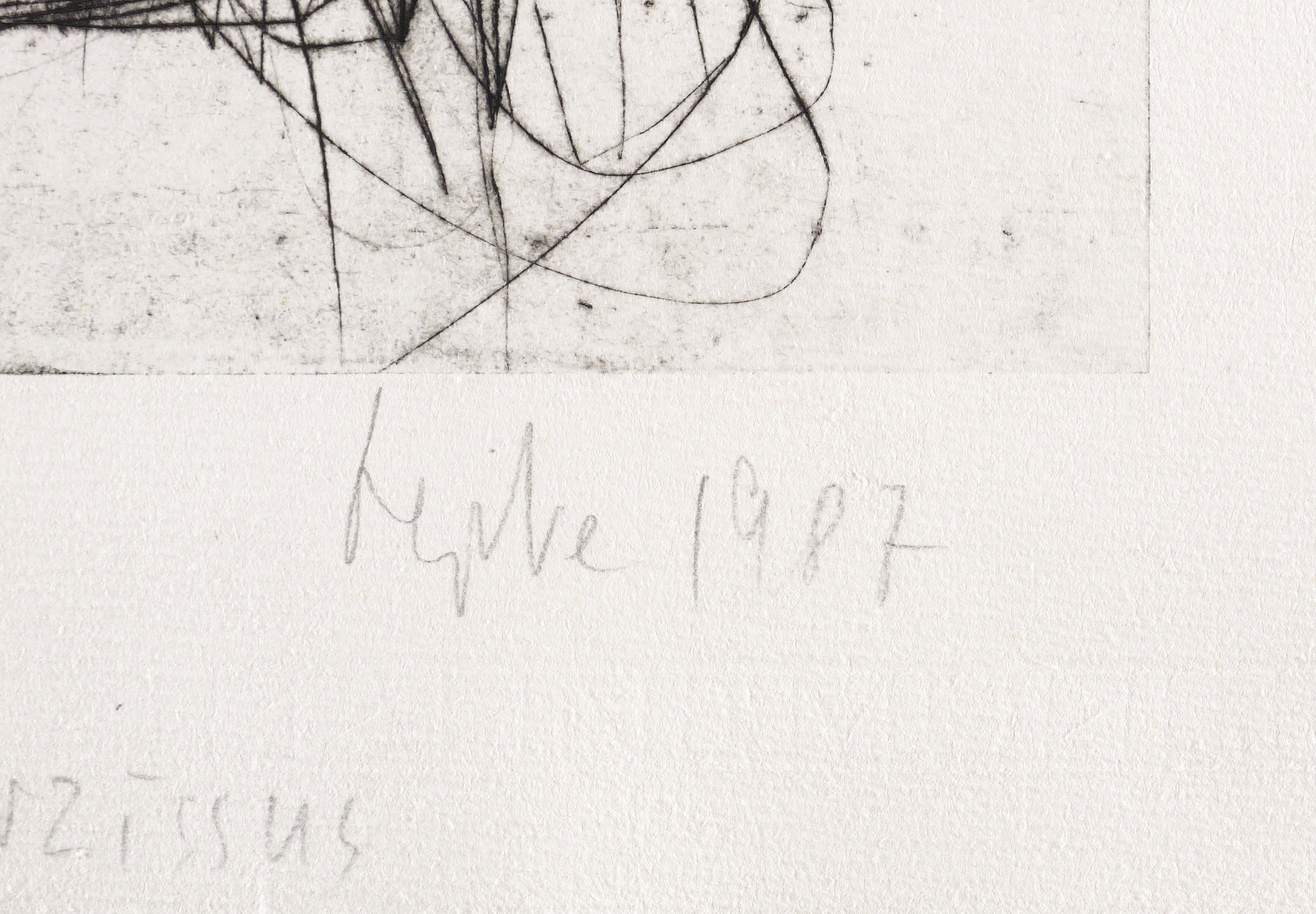 1987. Radierung / Kaltnadel, in Schwarz, auf schwerem hellchamois Hahnemühle. – Originale Künstlergrafik, von Gerda Lepke. – Auflage Exemplar Nr. 9/9. – 29,8 x 19,5 cm (Darstellung / Platte), 40 x 27 cm (Blatt).