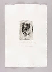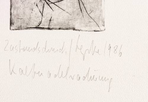 Rechts unten in Bleistift signiert und datiert: ″Lepke 1986″. Links Auflagenbezeichnung: ″Zustandsdruck″. Darunter Technikbezeichnung: ″Kaltnadelradierung″. Im unteren Blattrand Titel: ″Kopf eines jungen Mannes″. – Sehr guter Zustand.