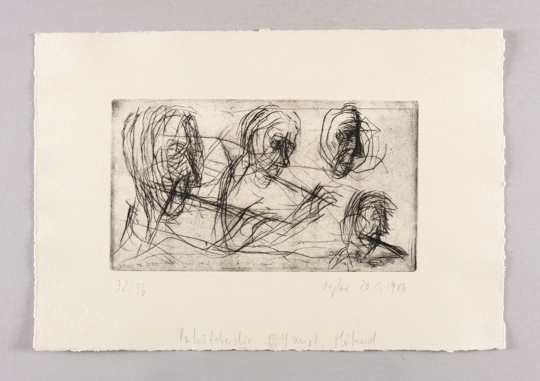 Rechts unten in Bleistift signiert und datiert: ″Lepke 20.1.1986″. Links Auflagenbezeichnung: ″32/36″. Im unteren Blattrand Titel: ″Porträtstudie E. Haupt, flötend″. – Sehr guter Zustand.