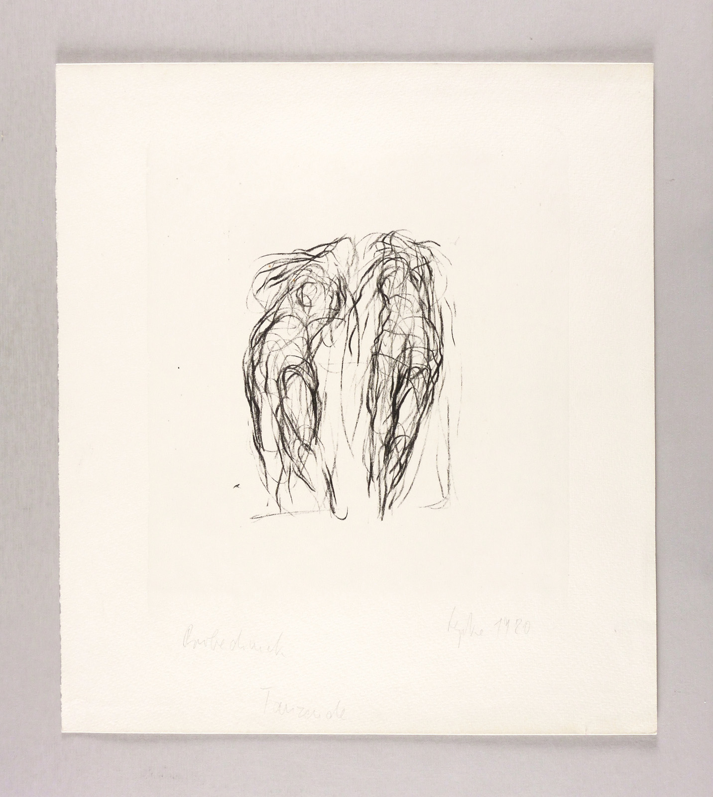 Rechts unten in Bleistift signiert und datiert: ″Lepke 1980″. Links Auflagenbezeichnung: ″Probedruck″. Darunter Titel: ″Tanzende″. – Sehr guter Zustand.