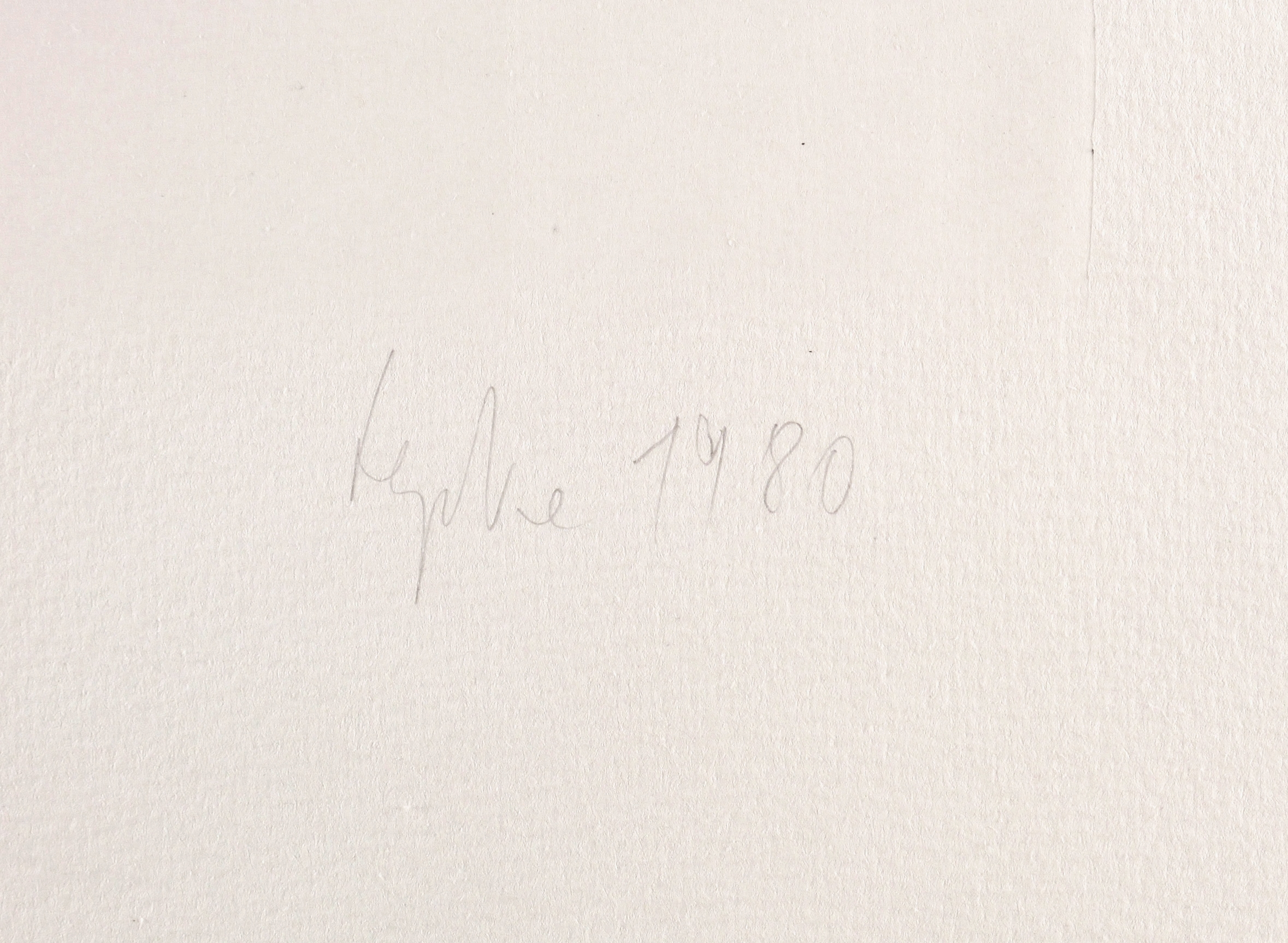 1980. Lithografie / Kreidelithografie, in Schwarz, auf hartem hellchamois Weißenborn. – Originale Künstlergrafik, von Gerda Lepke. – Probedruck. – 19,0 x 15,5 cm (Darstellung / Druckbild), 31,0 x 26,8 cm (Stein), 43 x 38 cm (Blatt).