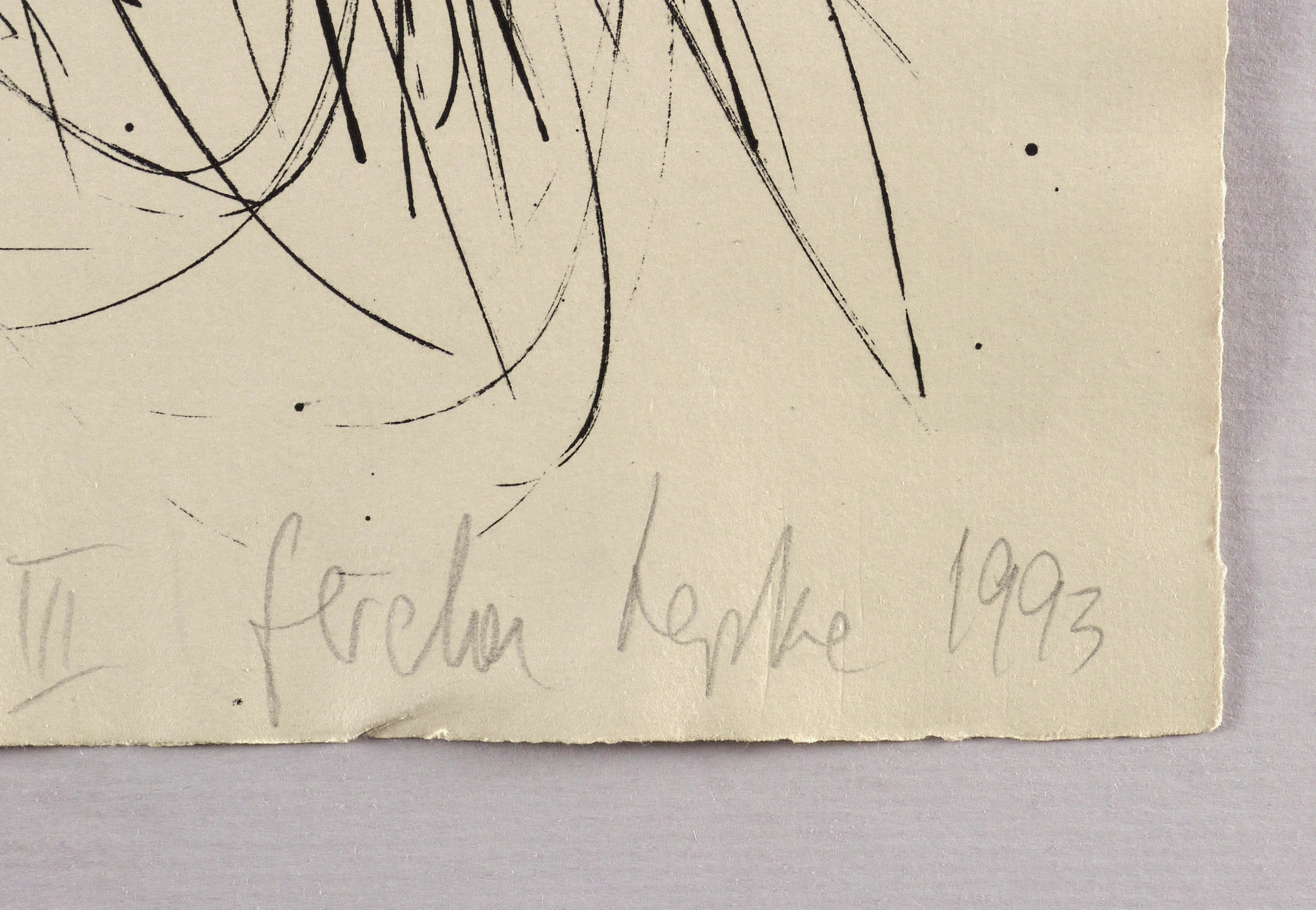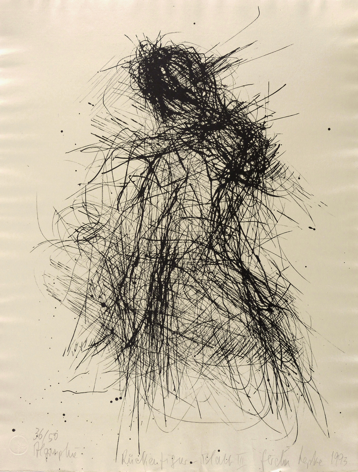 1993. Algrafie / Pinselalgrafie, in Schwarz, auf beige getöntem Bütten. – Originale Künstlergrafik, von Gerda Lepke. – Auflage Exemplar Nr. 36/50. – 48 x 37 cm (Blatt), 46,4 x 33,0 cm (Darstellung / Druckbild).