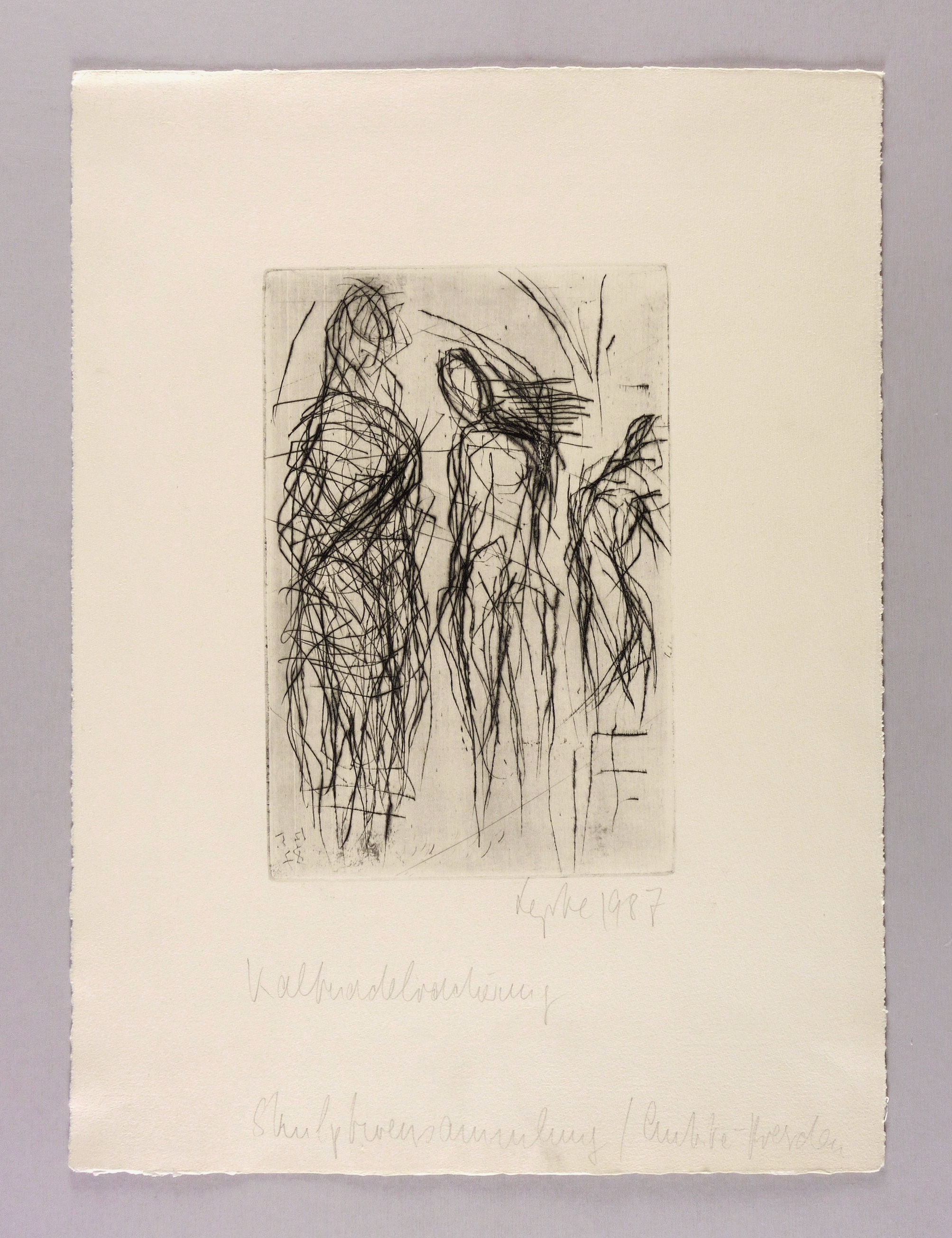 Rechts unten in Bleistift signiert und datiert: ″Lepke 1987″. Links Technikbezeichnung: ″Kaltnadelradierung″. Im unteren Blattrand Titel: ″Skulpturensammlung / Antike-Dresden″. Wasserzeichen der Hahnemühle. – Sehr guter Zustand.