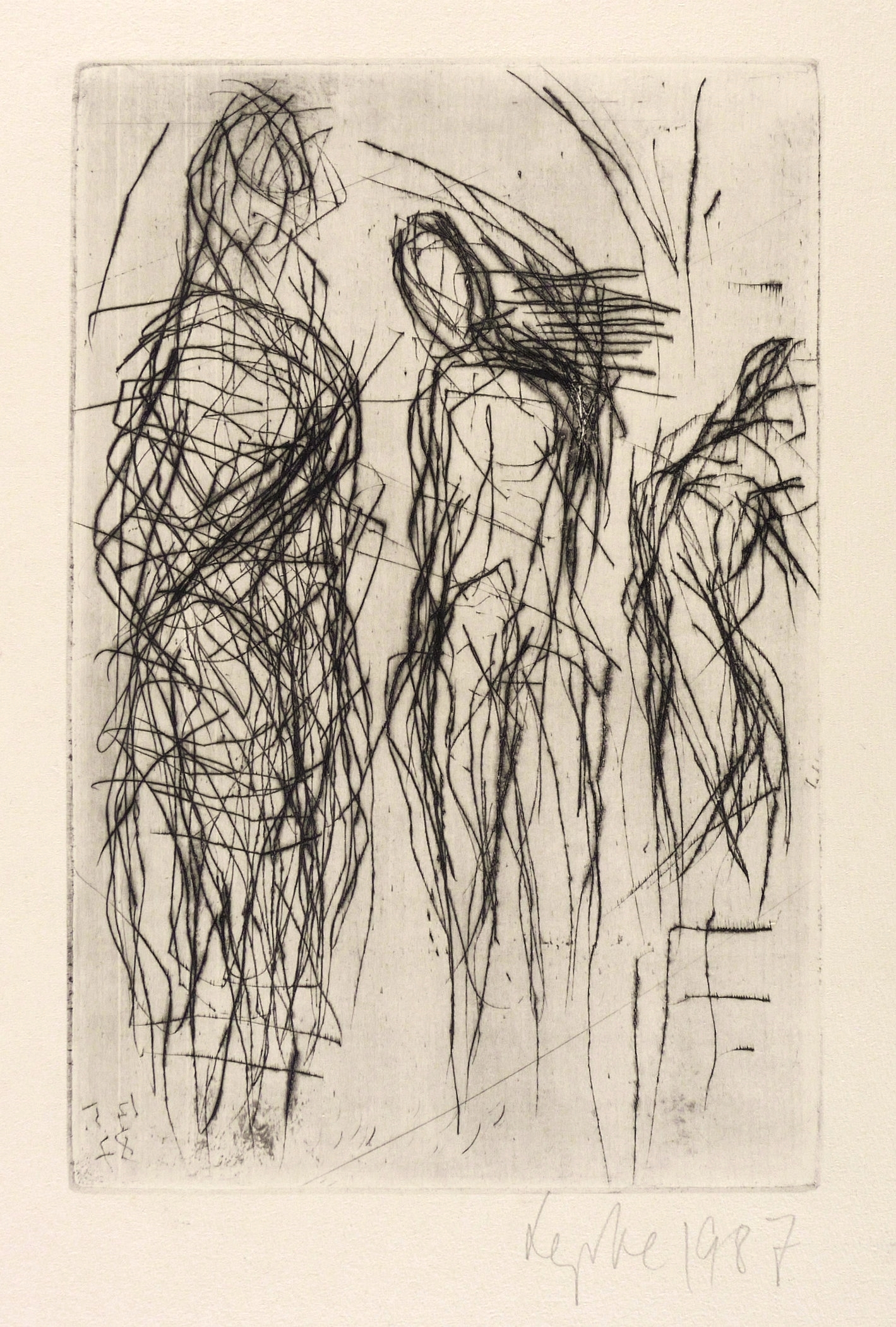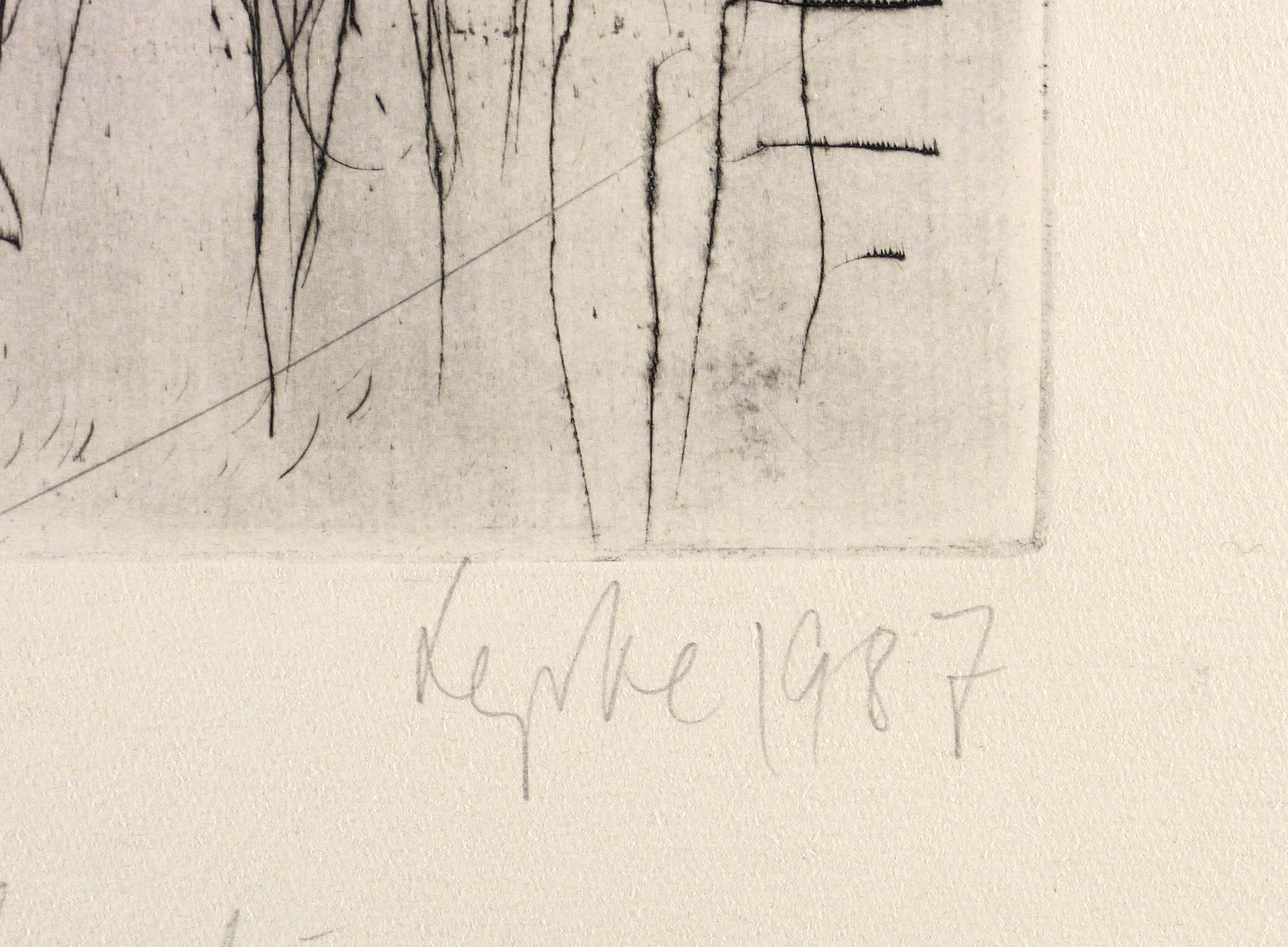 1987. Radierung / Kaltnadel, in Schwarz, mit Plattenton, auf schwerem chamois Hahnemühle. – Originale Künstlergrafik, von Gerda Lepke. – 29,7 x 19,8 cm (Darstellung / Platte), 53 x 40 cm (Blatt).