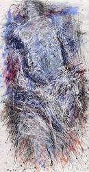 1995. Mischtechnik / Aquarell, Tusche & Deckweiß, auf transparenter Vlieseline. – Originale Künstlergrafik, von Gerda Lepke. – Unikat. – 92,5 x 48,0 cm (Darstellung / Blatt).