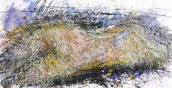 1987. Mischtechnik / Aquarell, mit Tusche & Deckweiß, auf transparenter Vlieseline. – Originale Künstlergrafik, von Gerda Lepke. – Unikat. – 25,5 x 50,5 cm (Darstellung / Blatt).