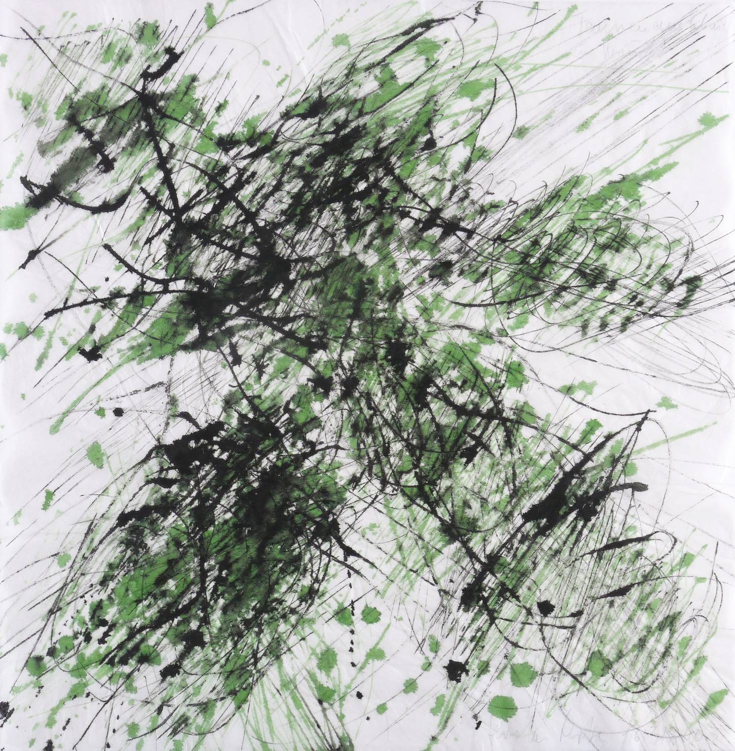 2003. Mischtechnik / Aquarell, mit Tusche, auf transparenter Vlieseline. – Originale Künstlergrafik, von Gerda Lepke. – Unikat. – 49,0 x 48,0 cm (Darstellung / Blatt).