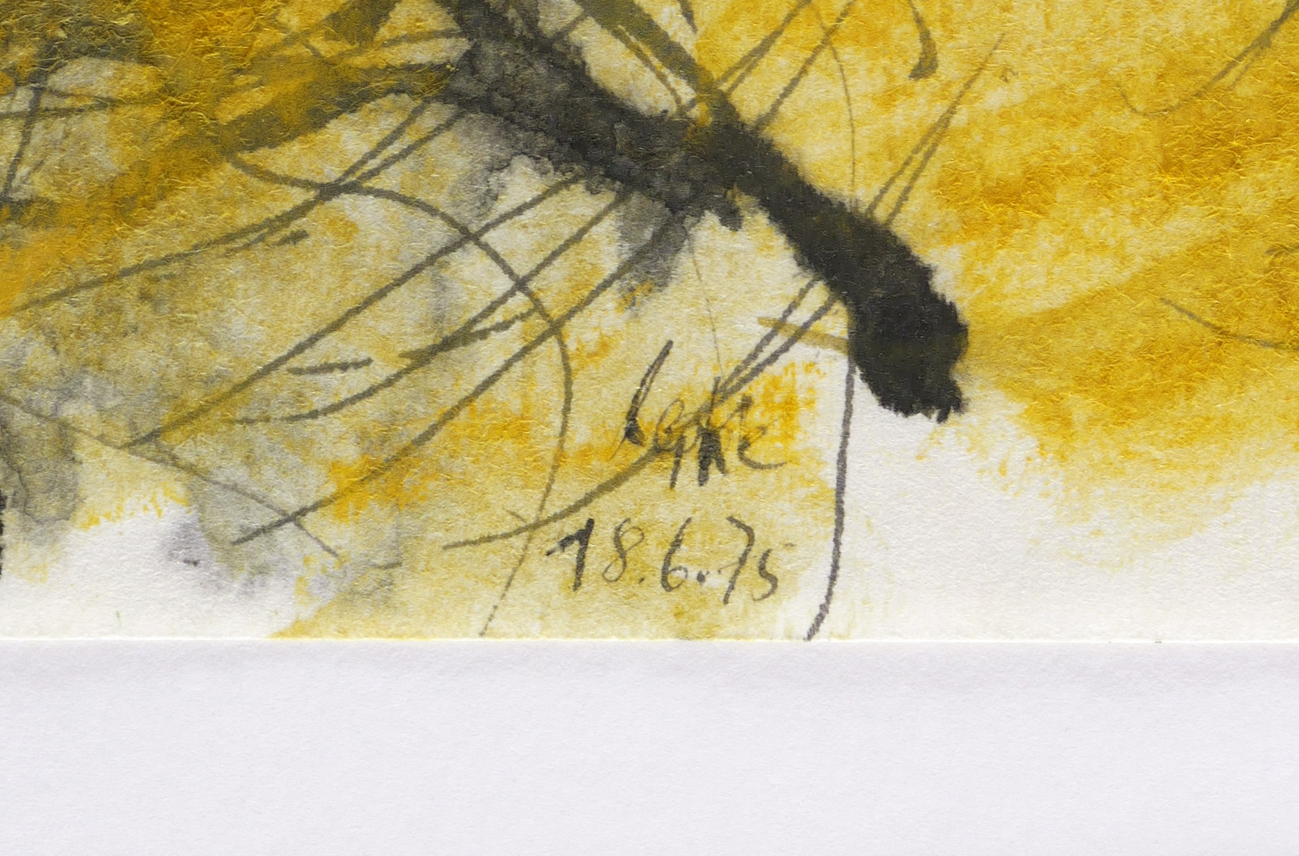 18.6.1975. Mischtechnik / Aquarell, mit Tusche auf Büttenpapier. – Originale Künstlergrafik, von Gerda Lepke. – Unikat. – 20,5 x 34,0 cm (Darstellung / Blatt).