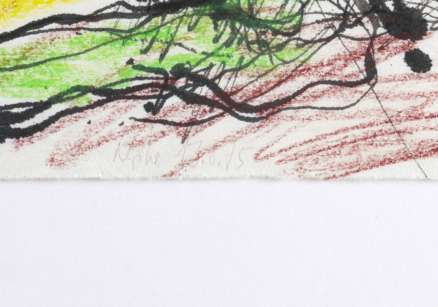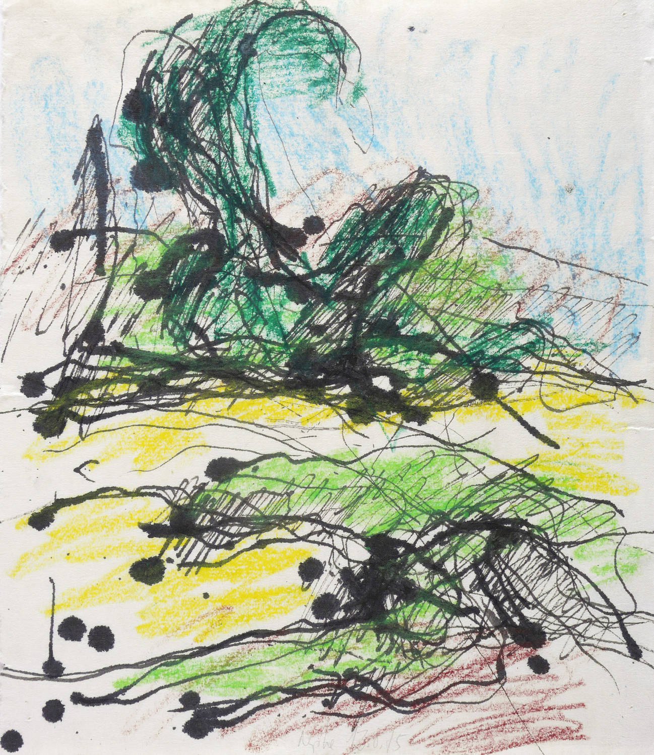 13.8.1975. Mischtechnik / Aquarell, mit Tusche & Kreidestift auf Büttenpapier. – Originale Künstlergrafik, von Gerda Lepke. – Unikat. – 29,5 x 25,5 cm (Darstellung / Blatt).