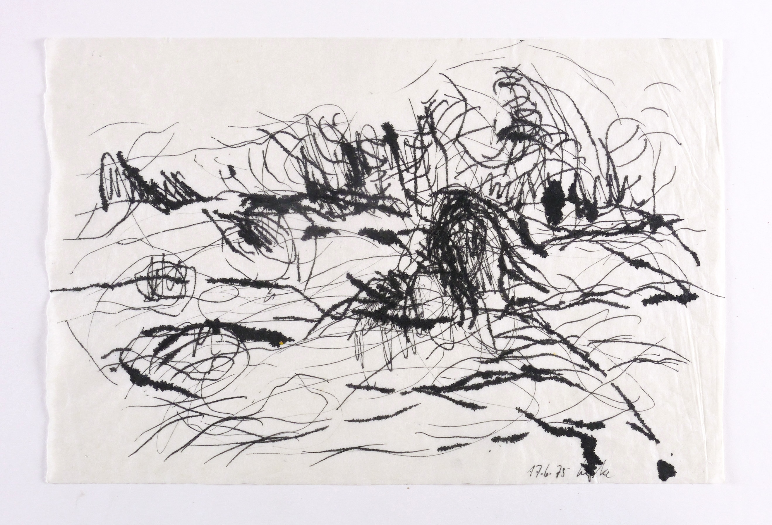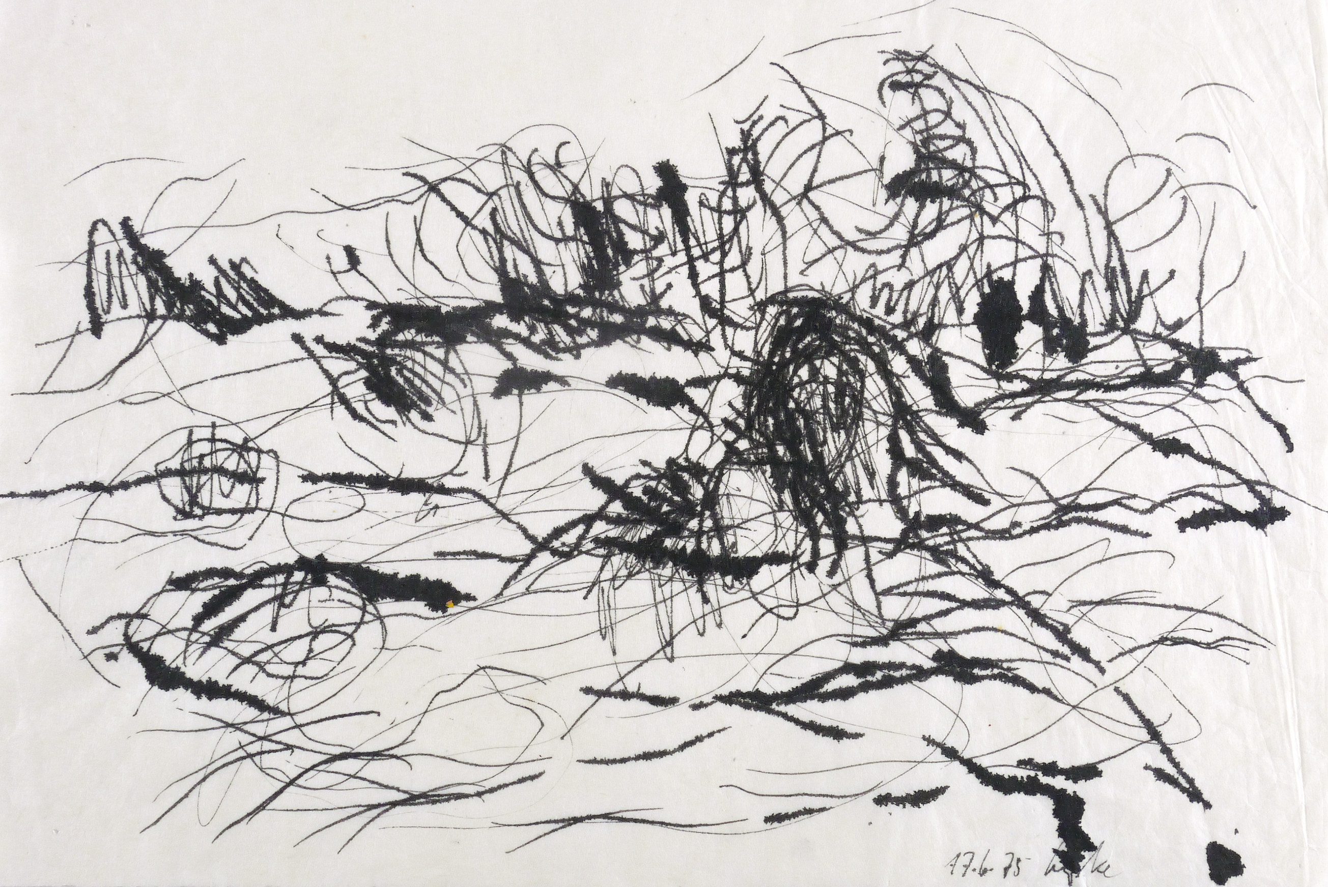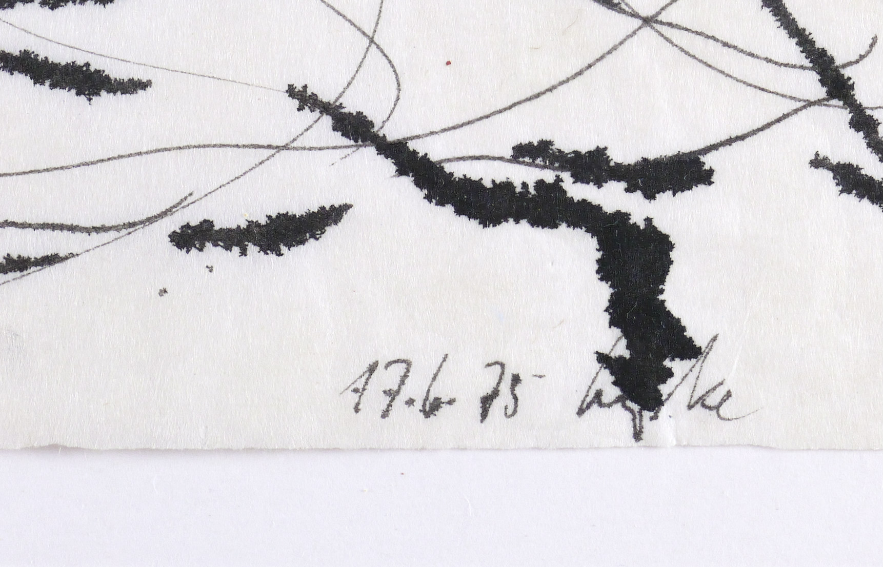 17.6.75. Zeichnung / Tusche, auf Büttenpapier. – Originale Künstlergrafik, von Gerda Lepke. – Unikat. – 25,5 x 38,5 cm (Darstellung / Blatt).