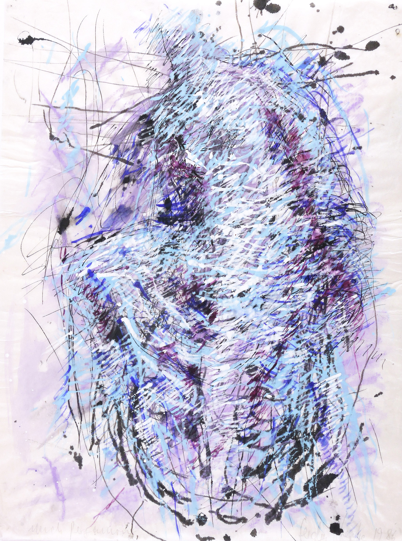 1986. Mischtechnik / Aquarell, mit Tusche & Deckweiß, auf Vlieseline. – Originale Künstlergrafik, von Gerda Lepke. – Unikat. – 50,7 x 37,6 cm (Darstellung / Blatt).