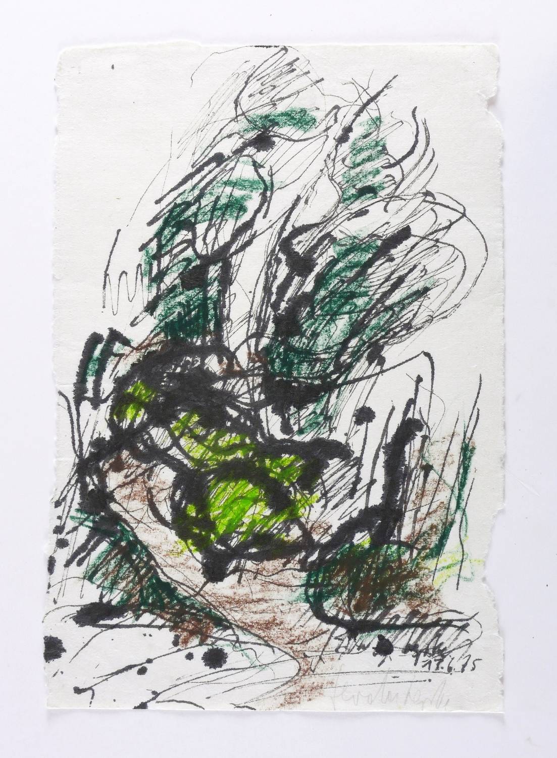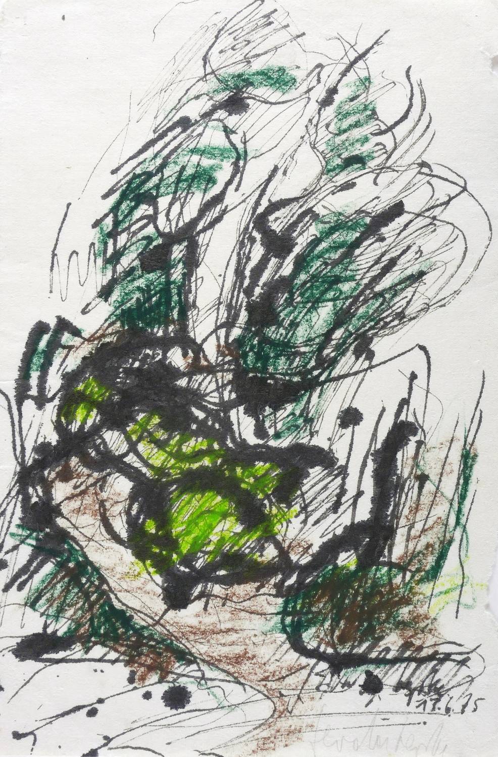 13.6.1975. Mischtechnik / Aquarell, mit Tusche & Kreidestift auf Büttenpapier. – Originale Künstlergrafik, von Gerda Lepke. – Unikat. – 36,2 x 24,5 cm (Darstellung / Blatt).