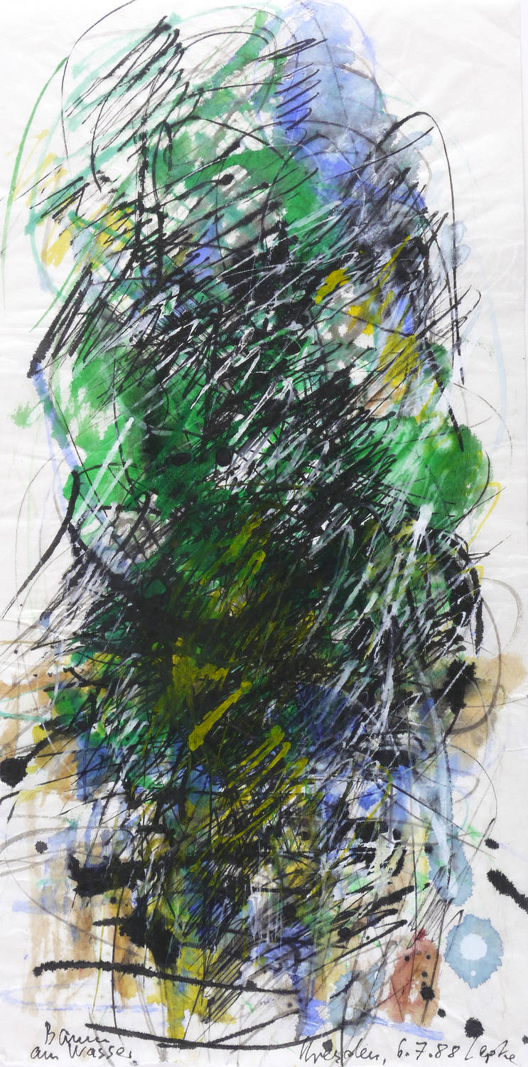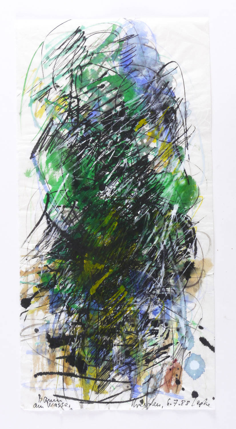 Links unten betitelt ″Baum am Wasser″, unten rechts signiert & datiert: ″Dresden, 6.7.88 Lepke″. – Sehr guter Zustand.