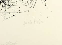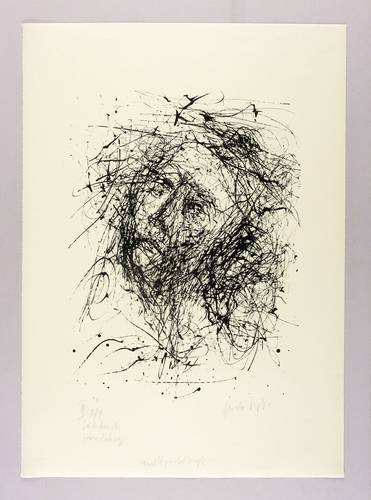 2009. Siebdruck / Serigrafie, in Schwarz, auf feinem gelbem Zerkall. – Originale Künstlergrafik, von Gerda Lepke. – Auflage Exemplar Nr. 5/9. – 48,5 x 36,0 cm (Darstellung / Druckbild), 71 x 50 cm (Blatt).