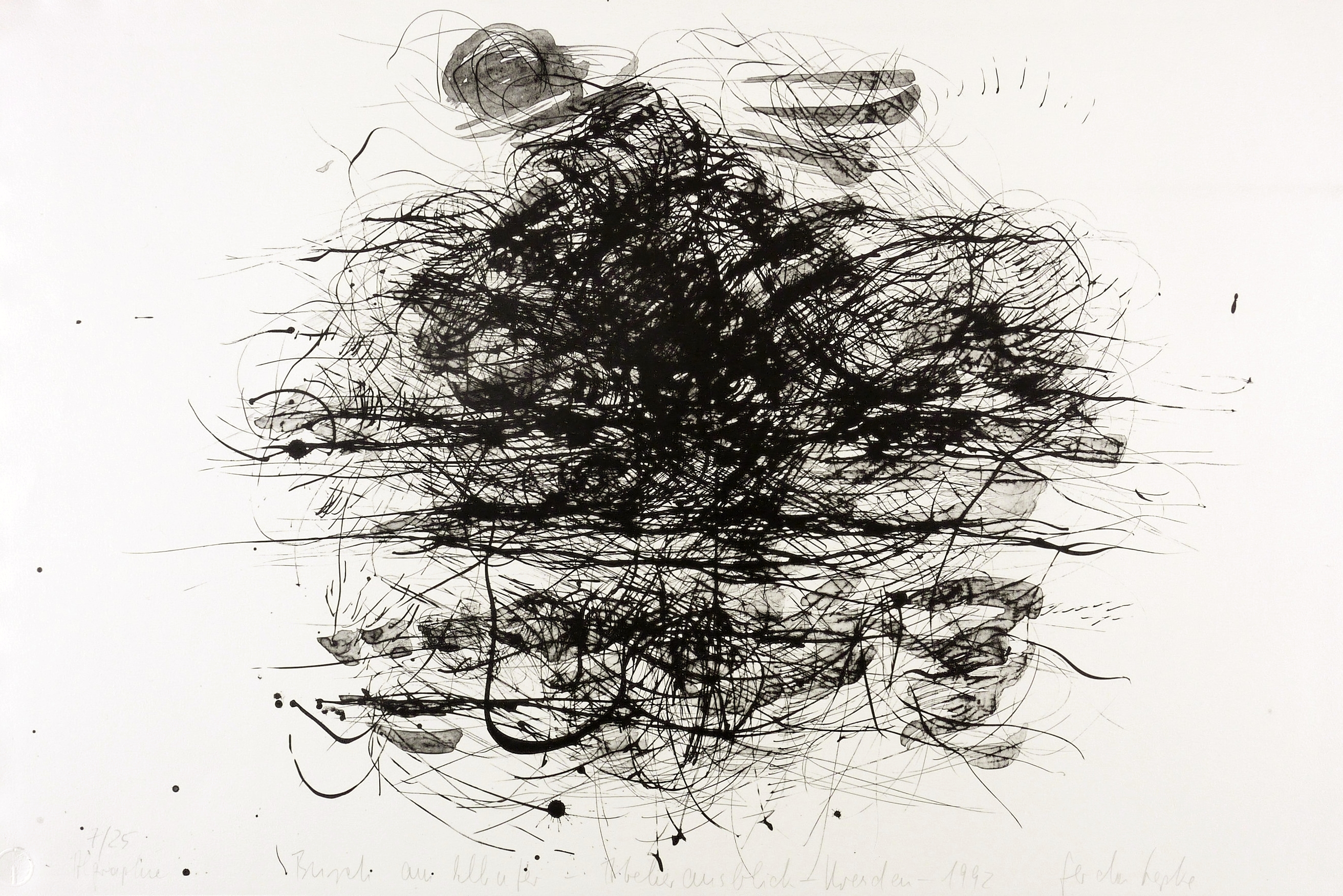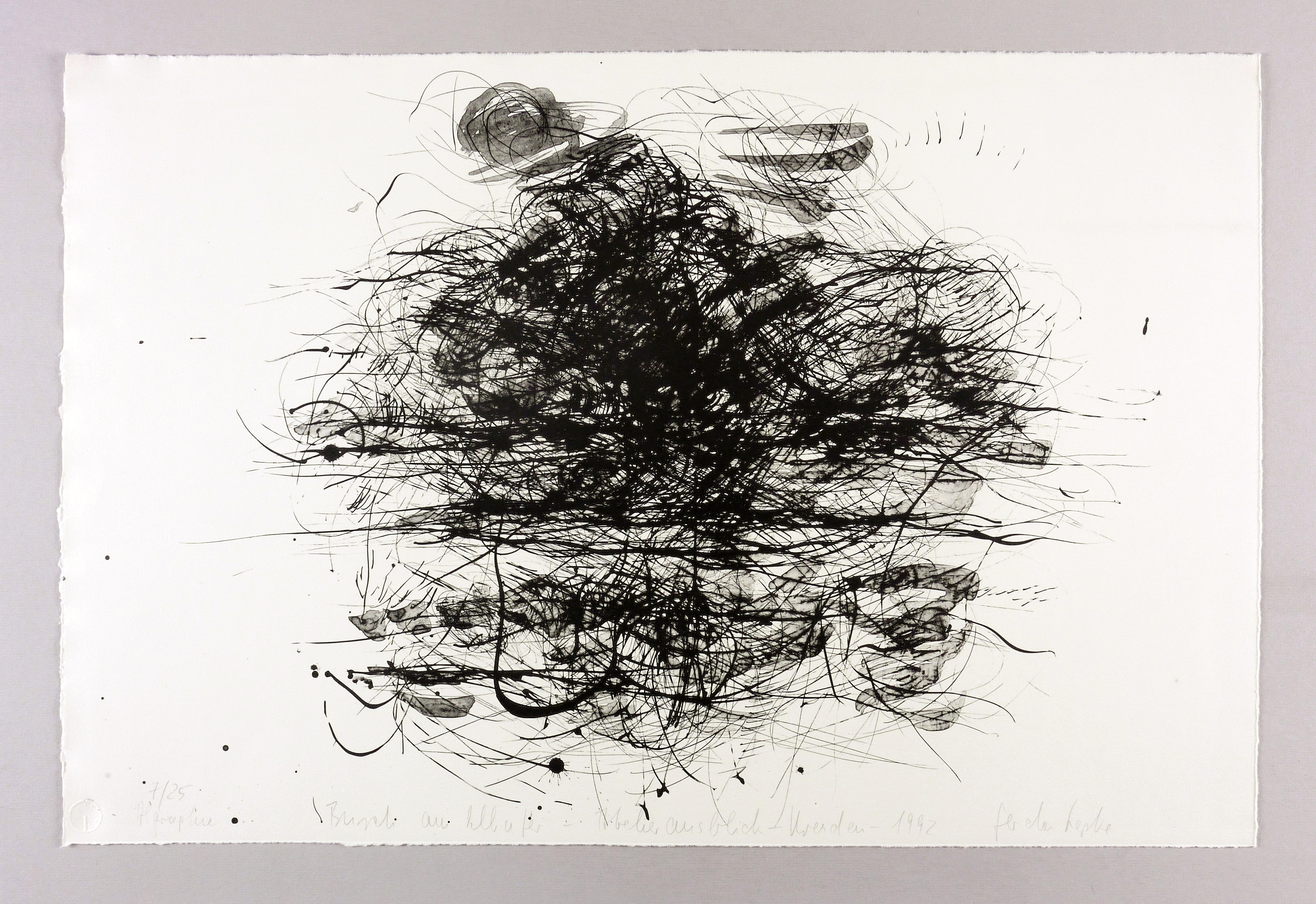 1992. Algrafie / Pinselalgrafie, in Schwarz, auf schwerem hellchamois Velin. – Originale Künstlergrafik, von Gerda Lepke. – Auflage Exemplar Nr. 7/25. – 48 x 73 cm (Blatt), 46,5 x 62,0 cm (Darstellung / Druckbild).