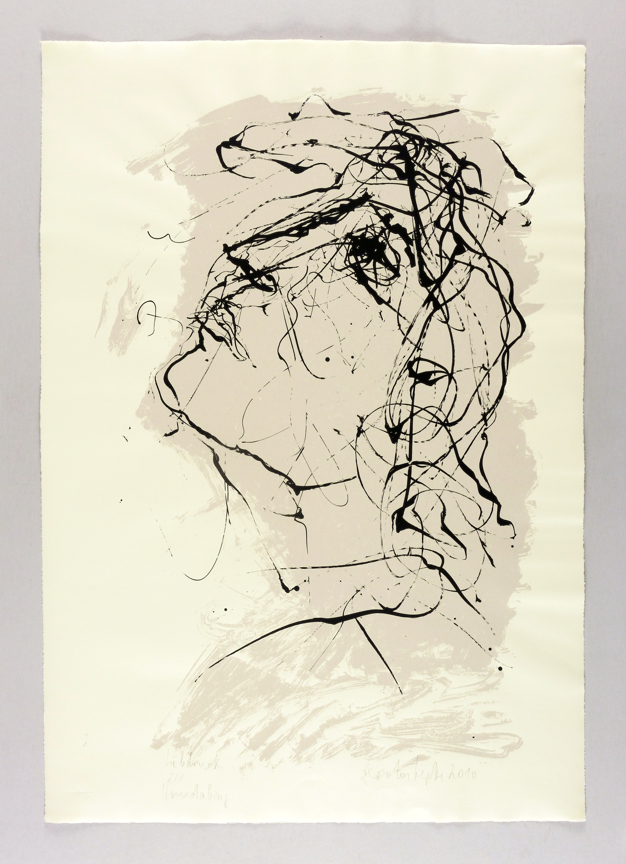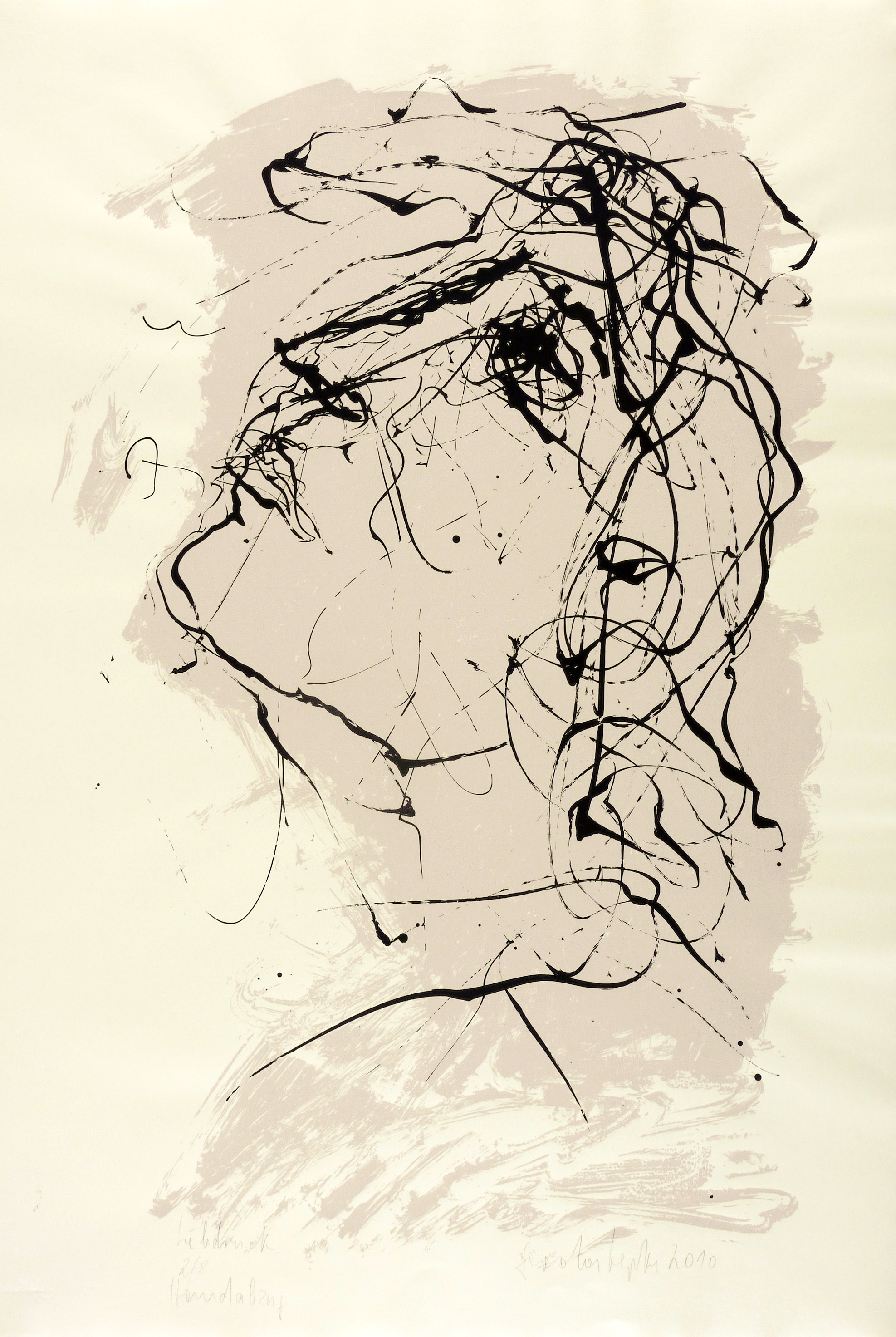 2010. Farbsiebdruck / Farbserigrafie, in Grau-Rosé & Schwarz, auf feinem chamois Zerkall. – Originale Künstlergrafik, von Gerda Lepke. – Auflage Exemplar Nr. 2/8. – 68,0 x 44,2 cm (Darstellung / Druckbild), 77 x 54 cm (Blatt).
