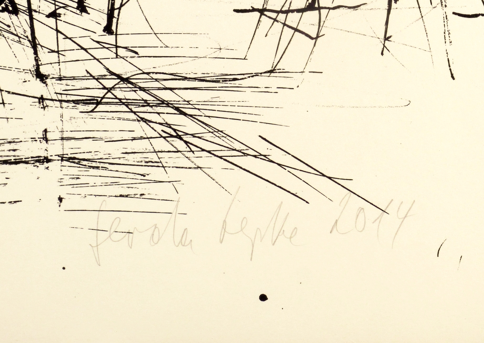 2014. Siebdruck / Serigrafie, in Schwarz, auf feinem gelbem Zerkall. – Originale Künstlergrafik, von Gerda Lepke. – Auflage Exemplar Nr. 8/9. – 41,0 x 66,4 cm (Darstellung / Druckbild), 54 x 77 cm (Blatt).