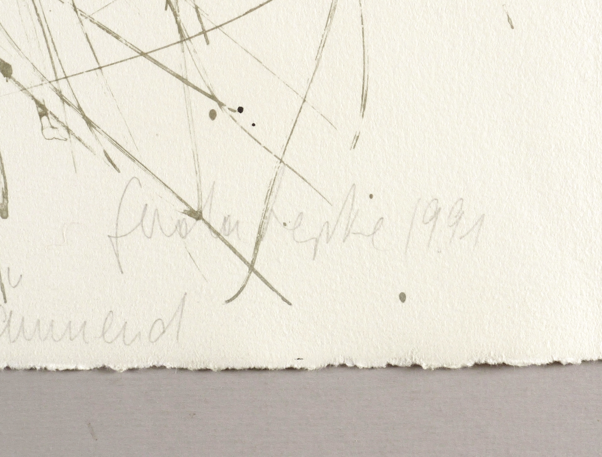 Rechts unten in Bleistift signiert und datiert: ″Gerda Lepke 1991″. Links Auflagen- und Technikbezeichnung: ″PR / Algraphie″. Mittig im unteren Rand Titel: ″Diana, von Aktäon träumend″. – Sehr guter Zustand.