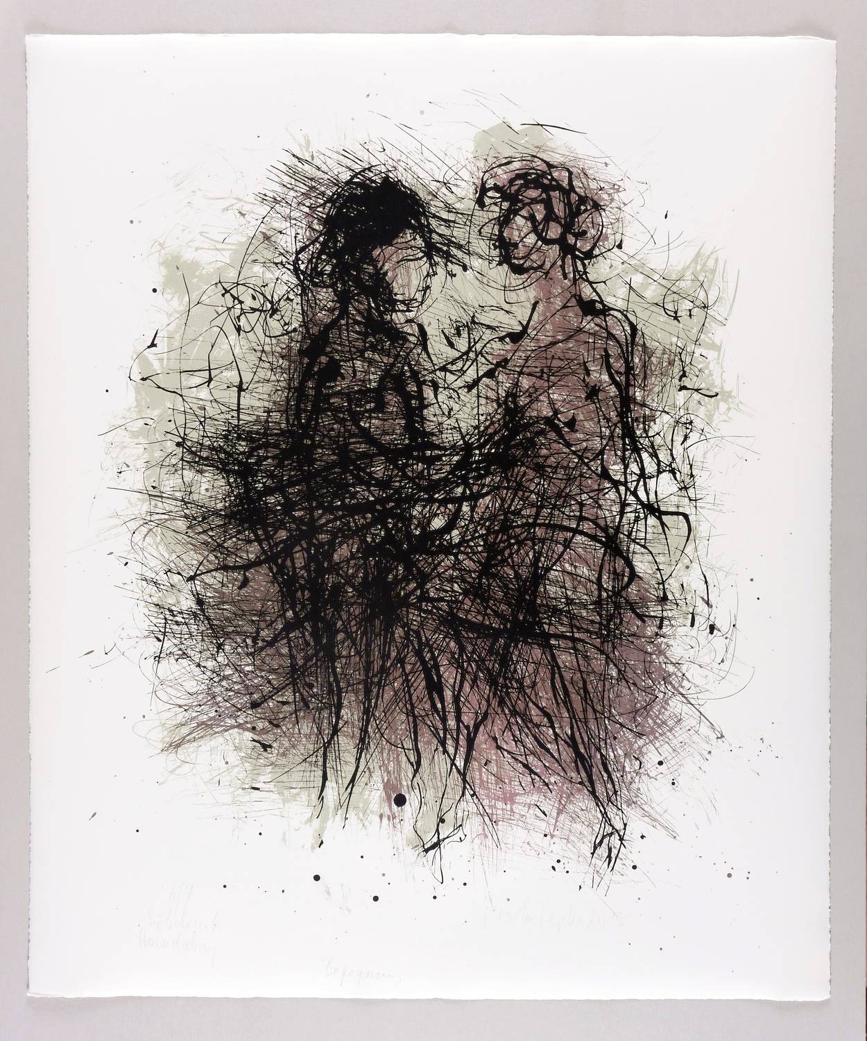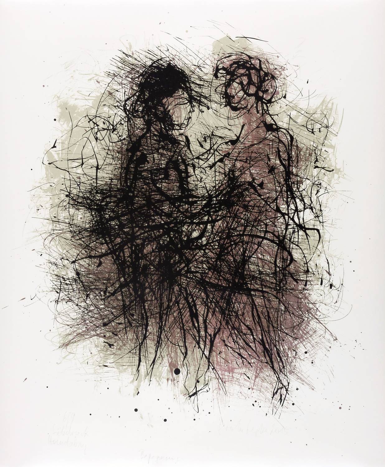 Rechts unten in Bleistift signiert und datiert: ″Gerda Lepke 2015″. Links Auflagen- und Technikbezeichnung: ″6/9 / Siebdruck Handabzug″. Unten mittig Titel: ″Begegnung″. – Sehr guter Zustand.