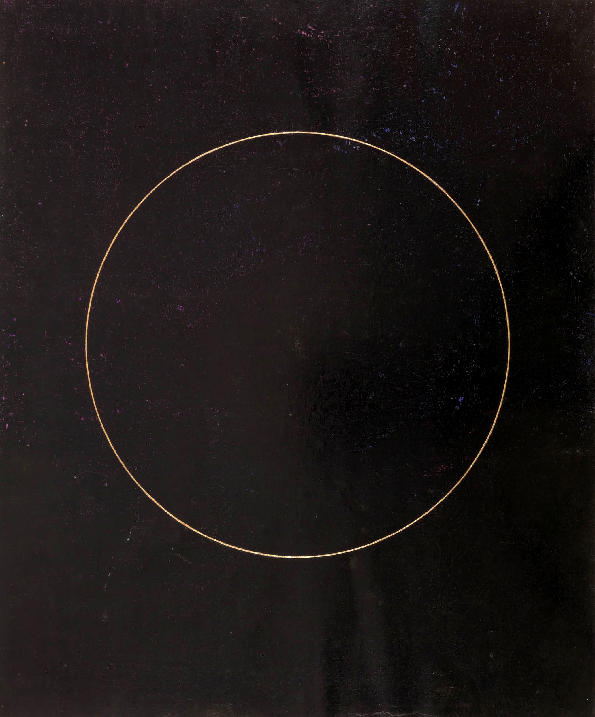 Luther, Manfred. – Cogito ergo sum. – Kreis. – „Alles Vergängliche ist nur ein Gleichnis (Gold auf Schwarzviolett)”.