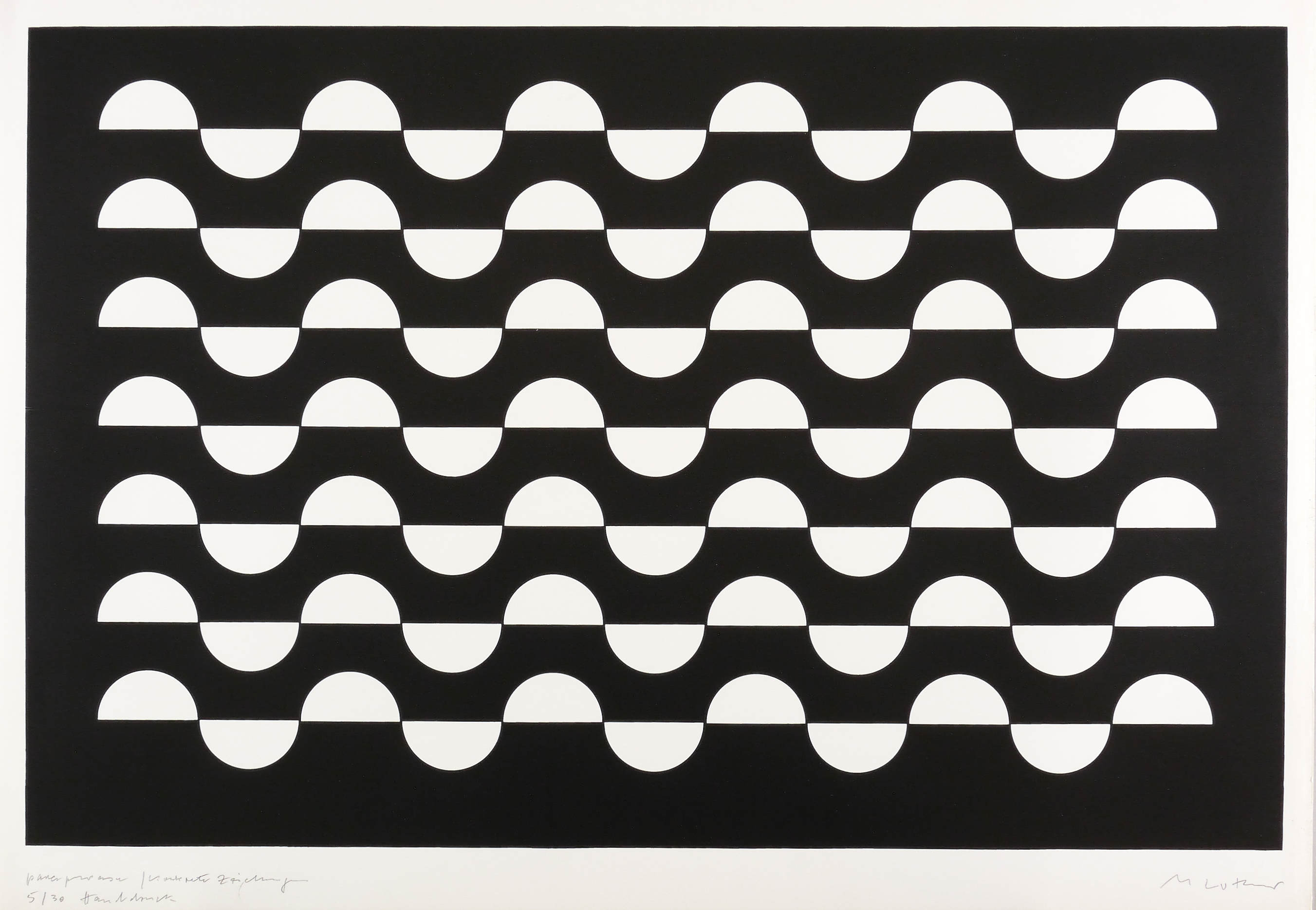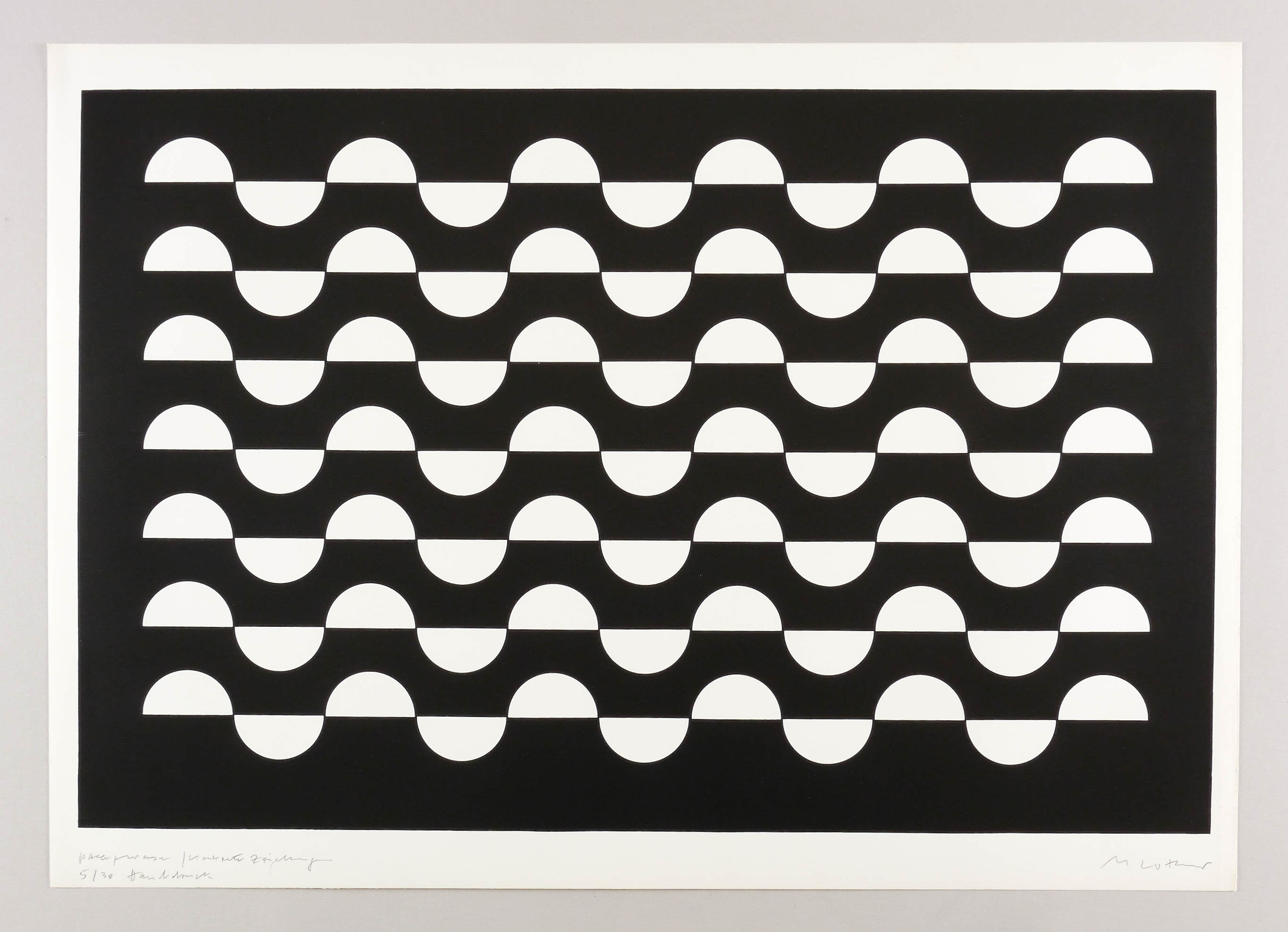 Manfred Luther (1925 Dresden - 2004 Dresden). Deutscher Maler und Grafiker. Namhafter Vertreter der Konkreten Kunst in der DDR. 1952-55 Arbeit als Konstrukteur. Ab 1955 freischaffender Maler und Grafiker. 1956-62 Zeichenunterricht bei diversen Künstlern und erste konkrete Zeichnungen. 1962-66 Studium bei Ernst Hassebrauk. 1968 24 Tuschblätter "Konkrete Zeichnungen", aus denen die Siebdruck-Serie "schwarz-weiß-grau" (1976-85) und die Folge "paraphrasen" (1970) entwickelt werden. 1979-83 folgt die Farbsiebdruck-Serie "Farbiger Epilog". 1980-94 erreicht er seinen künstlerischen Zenit mit der Kreis-Serie "Cogito ergo sum" in Mischtechniken und Siebdruck.