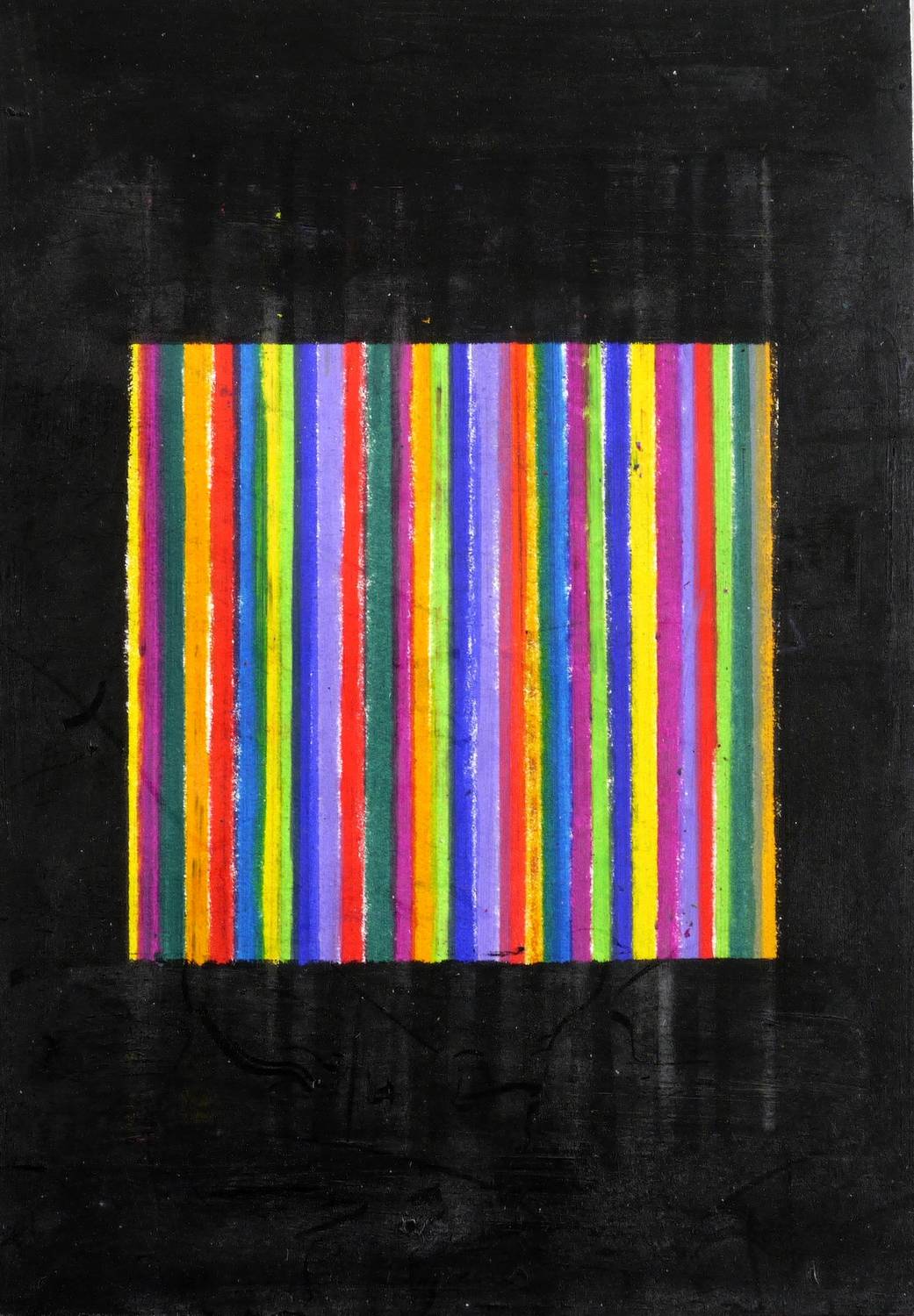 1975-1985. Mischtechnik / Wachskreide, auf glattem hellchamois Velinkarton. – Originale Künstlergrafik, von Manfred Luther. – Unikat. – 15,2 x 10,5 cm (Darstellung / Blatt).