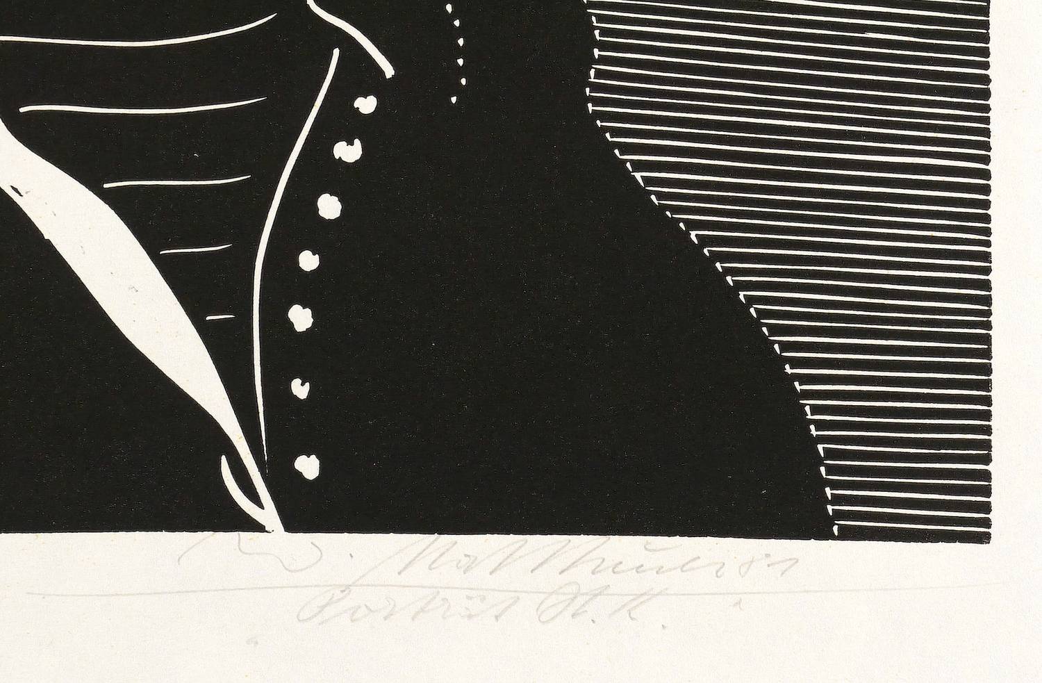 1981. Linolschnitt, in Schwarz, auf leichtem weißlichem Papier. – Originale Künstlergrafik, von Wolfgang Mattheuer. – Auflage Exemplar Nr. 14/30. – 42,3 x 39,1 cm (Darstellung / Druckstock), 57 x 50 cm (Blatt).