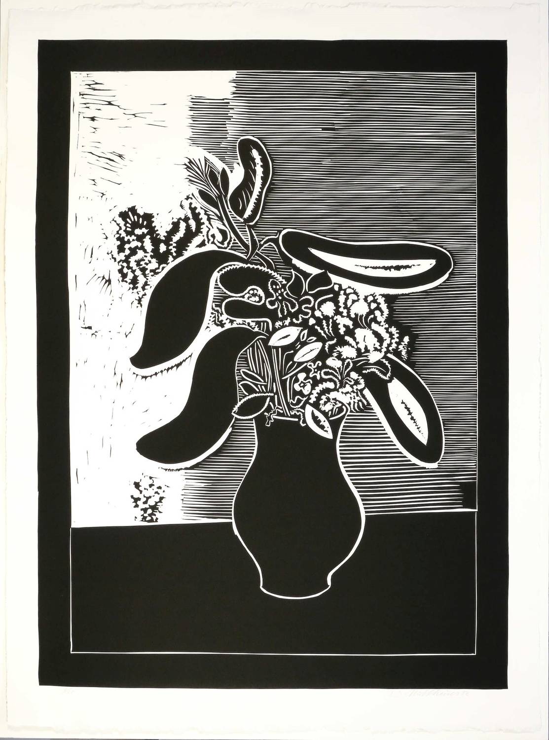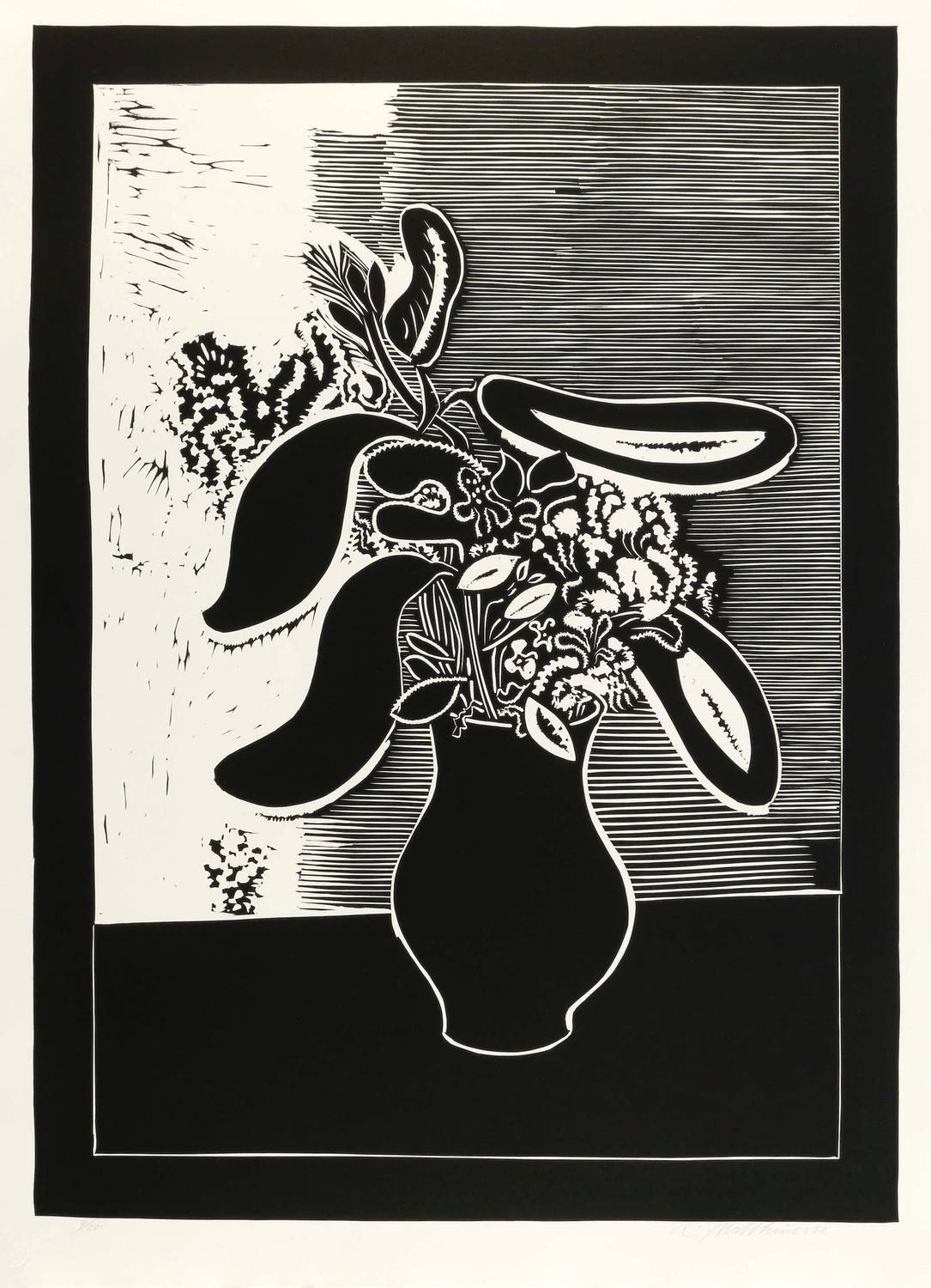 1996. Linolschnitt, in Schwarz, auf schwerem weißem Hahnemühle-Bütten. – Originale Künstlergrafik, von Wolfgang Mattheuer. – Auflage Exemplar Nr. 7/20. – 97,1 x 70,5 cm (Darstellung / Druckbild), 108 x 80 cm (Blatt), 111 x 83 cm (Trägerkarton).
