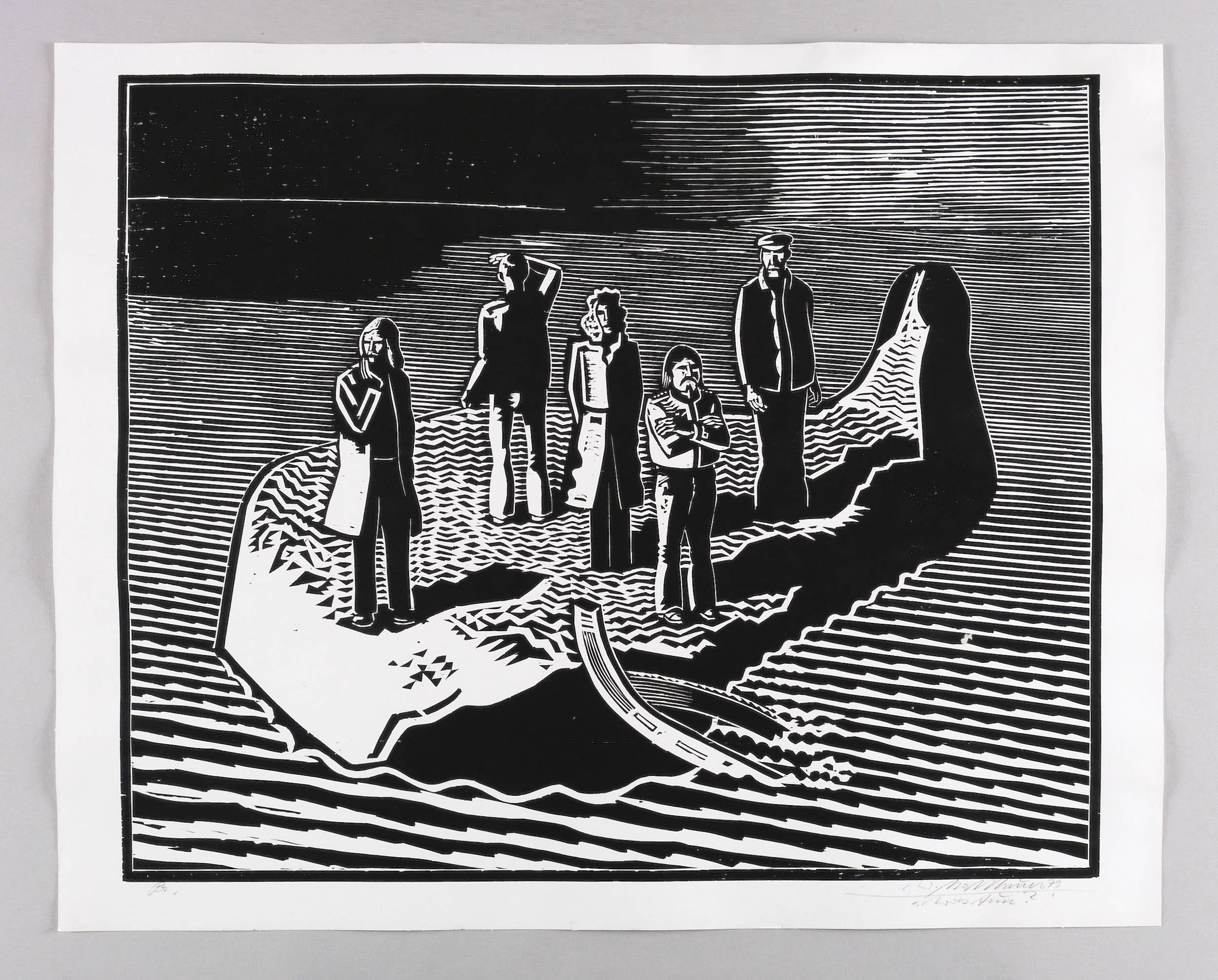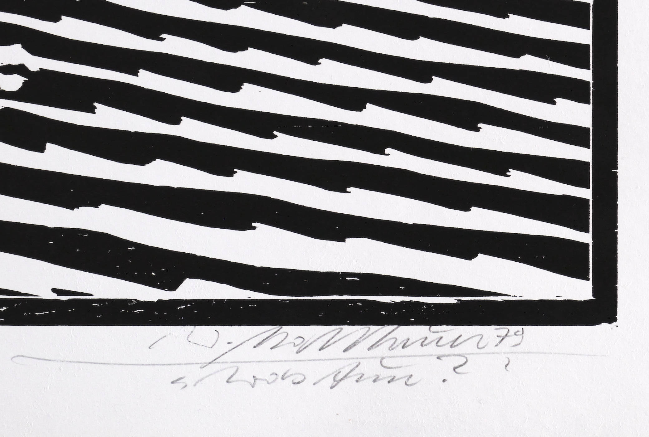 1979. Holzschnitt, in Schwarz, auf rauem weißlichem Velin. – Originale Künstlergrafik, von Wolfgang Mattheuer. – Probedruck. – 45,2 x 55,0 cm (Darstellung / Druckbild), 50 x 62 cm (Blatt).