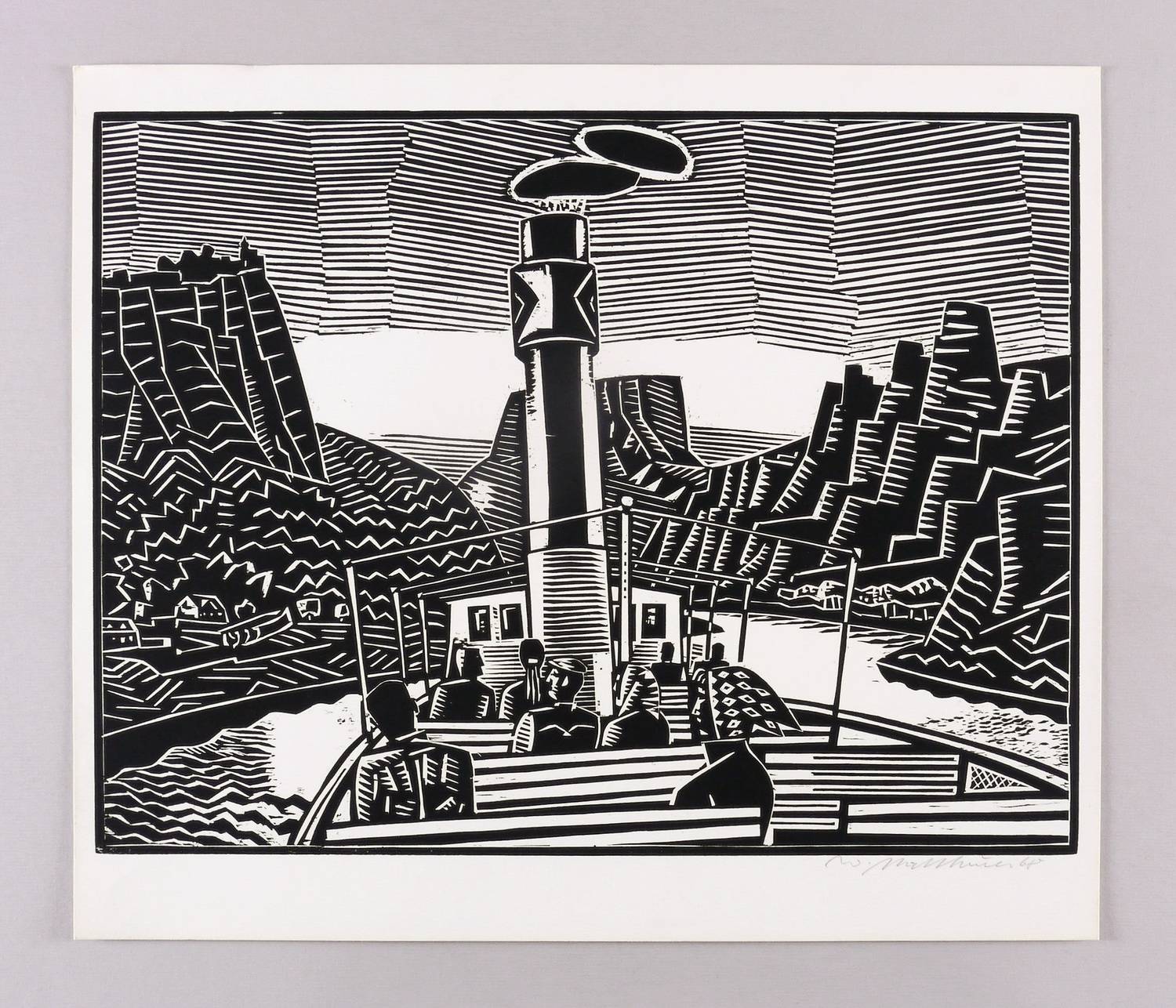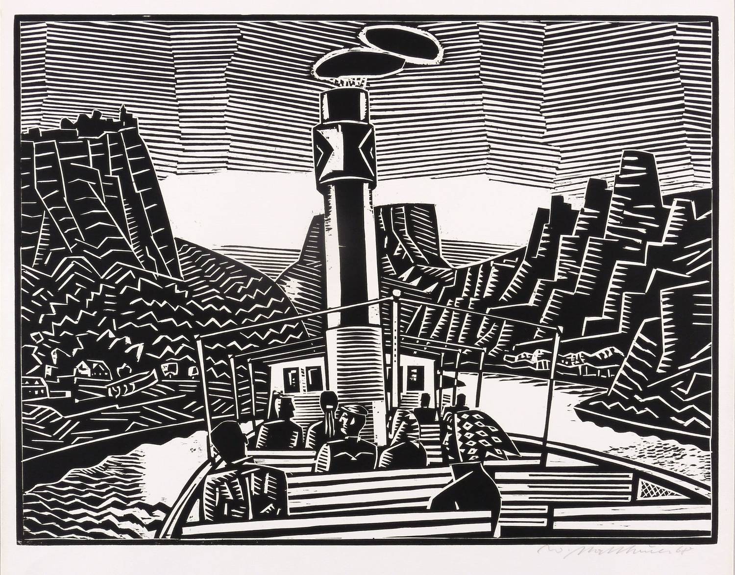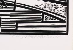 1967/1968. Holzschnitt, in Schwarz, auf hellchamois Velin. – Originale Künstlergrafik, von Wolfgang Mattheuer. – 36,5 x 48,1 cm (Darstellung / Druckstock), 43 x 50 cm (Blatt).