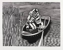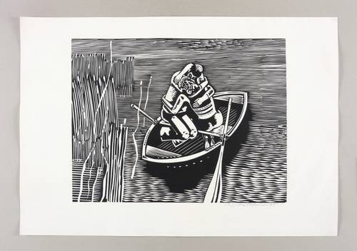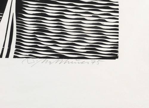 1975. Holzschnitt, in Schwarz, auf weißem Werkdruck. – Originale Künstlergrafik, von Wolfgang Mattheuer. – 32,0 x 42,0 cm (Darstellung / Druckstock), 43 x 62 cm (Blatt).