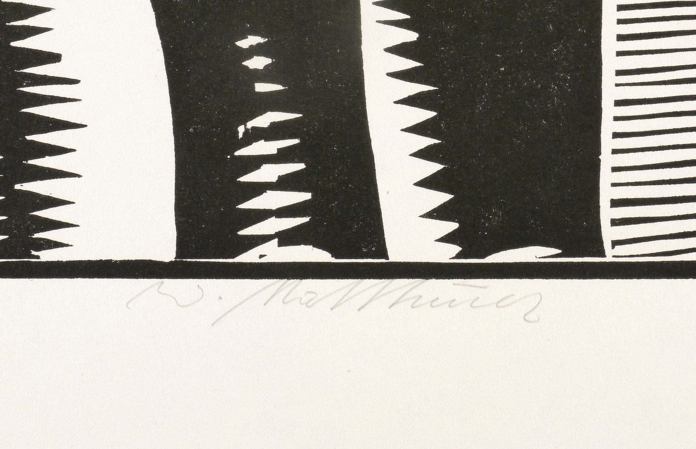 1985. Holzschnitt, in Schwarz, auf weißem rauem Büttenpapier. – Originale Künstlergrafik, von Wolfgang Mattheuer. – Auflage Exemplar Nr. 19/100. – 47,9 x 36,8 cm (Darstellung / Druckstock), 54 x 39 cm (Blatt).