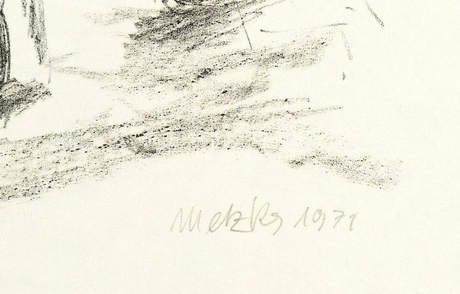 1971. Lithografie / Kreidelithografie, in Schwarz, auf hellchamois Velin. – Originale Künstlergrafik, von Harald Metzkes. – 30,1 x 36,9 cm (Darstellung), 36 x 49 cm (Blatt).