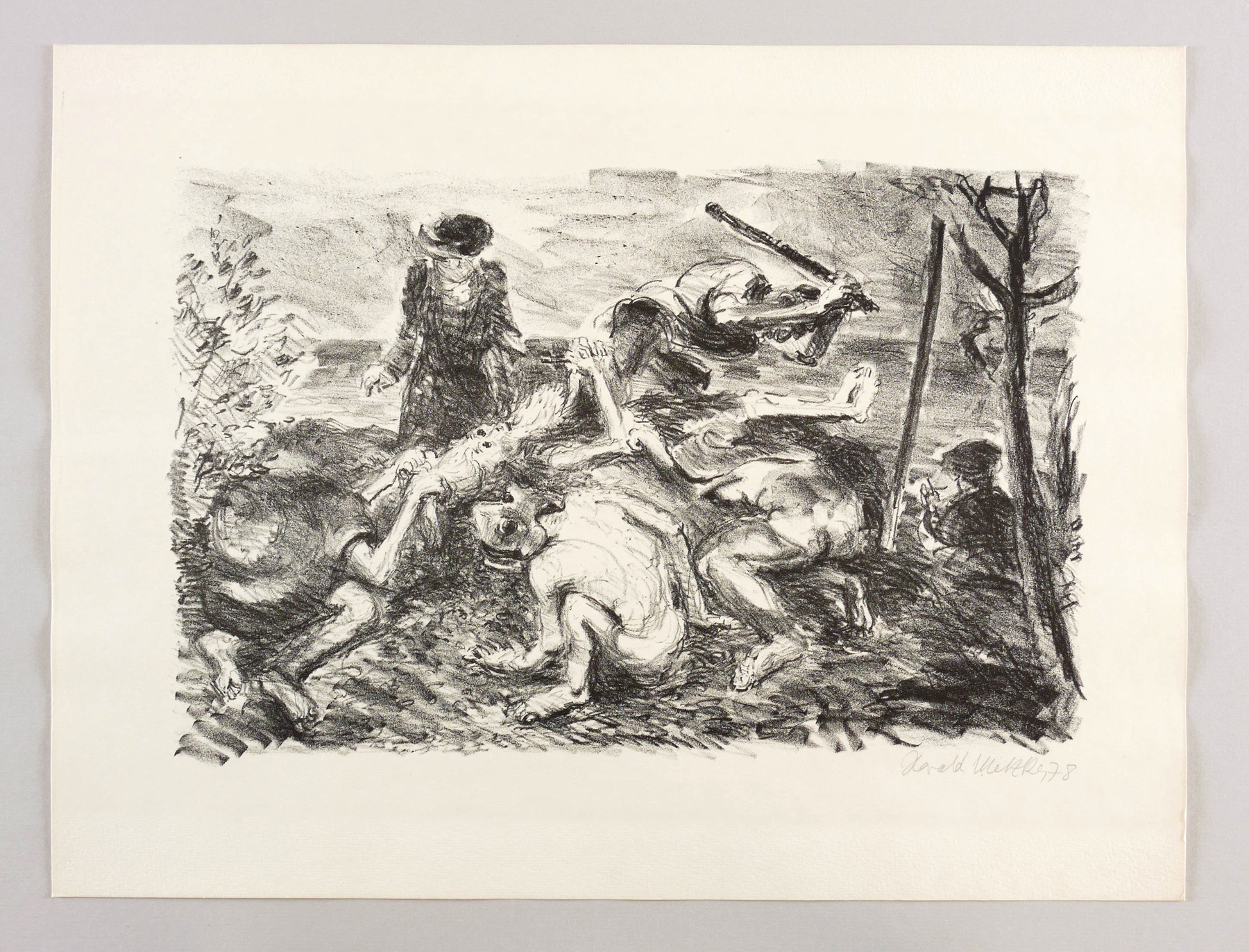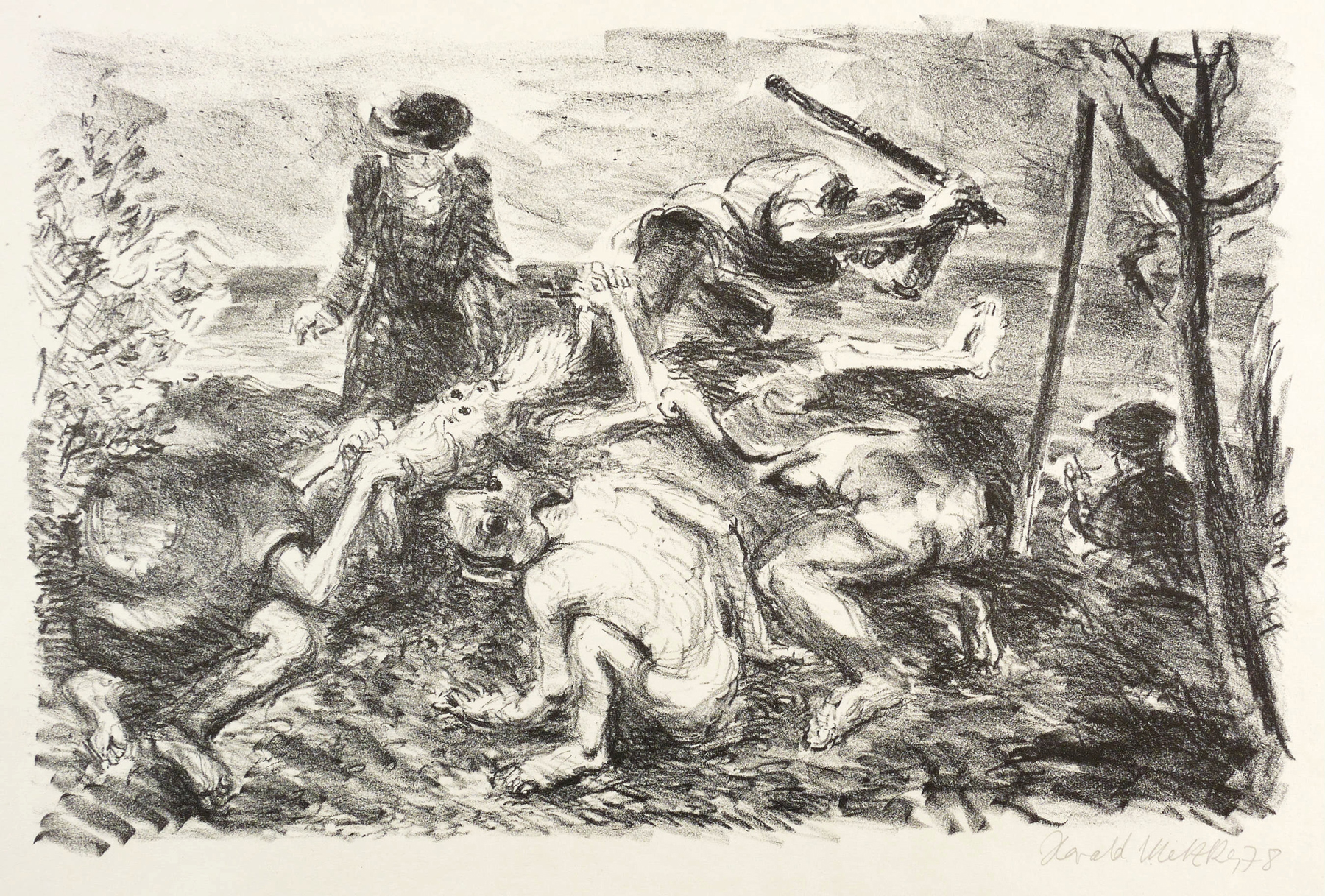 1978. Lithografie / Kreidelithografie, in Schwarz, auf hartem hellgelbem Weißenborn-Bütten. – Originale Künstlergrafik, von Harald Metzkes. – 25,0 x 38,5 cm (Darstellung / Druckbild), 36 x 48 cm (Blatt).