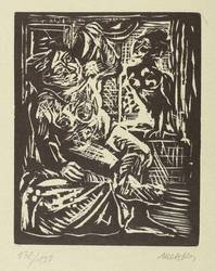 1968. Holzschnitt, in Schwarz, auf grau-grünem Maschinenbütten. – Originale Künstlergrafik, von Harald Metzkes. – Aufalge Exemplar Nr. 132/150. – 15,5 x 12,4 cm (Darstellung / Druckbild), 28 x 19 cm (Blatt).
