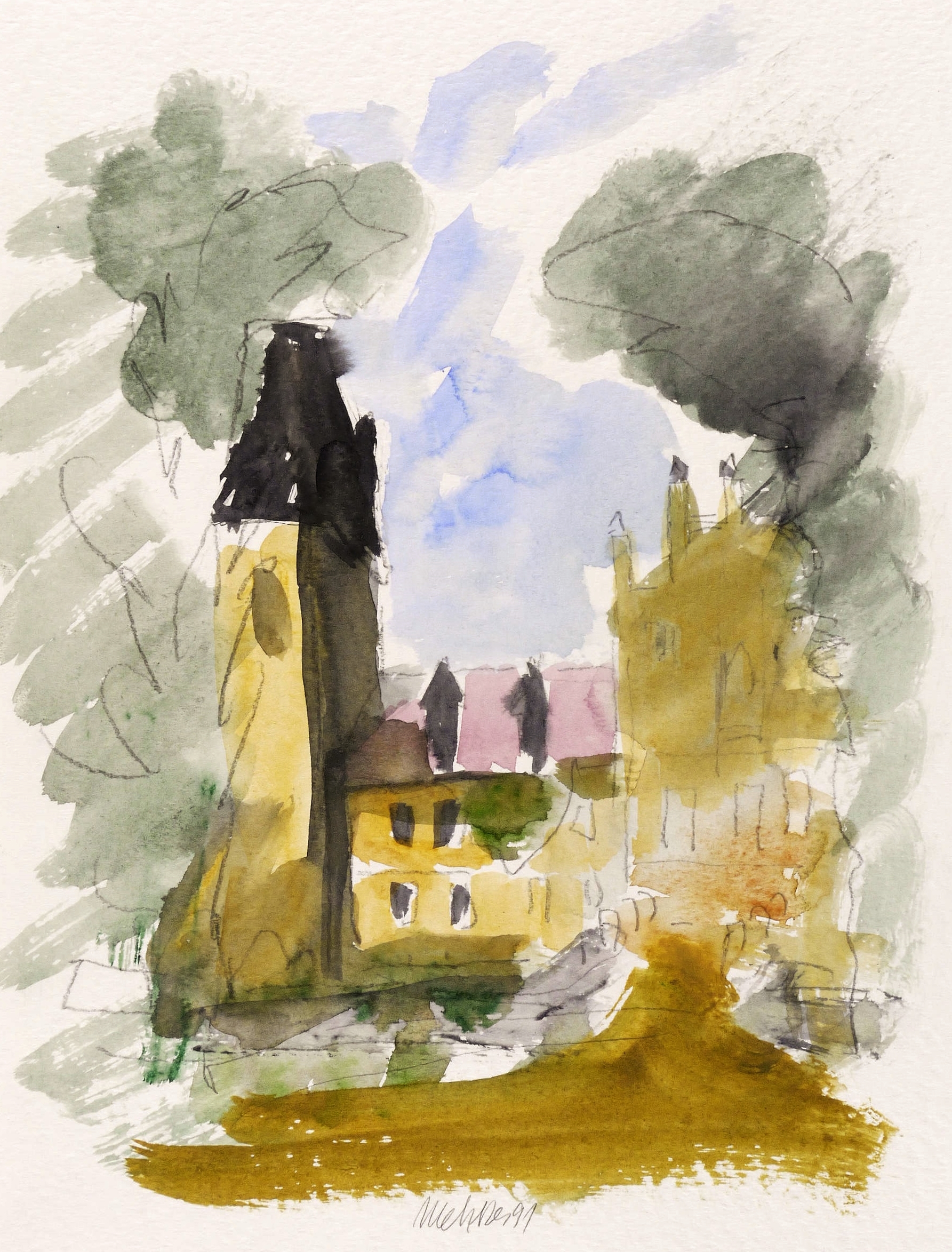 1991. Aquarell, über Bleistift, auf festem hellchamois Zanders-Parole. – Originales Künstlerbuch, von Harald Metzkes. – Unikat. – 30,3 x 23,4 cm (Darstellung), 34 x 24 cm (Blatt).