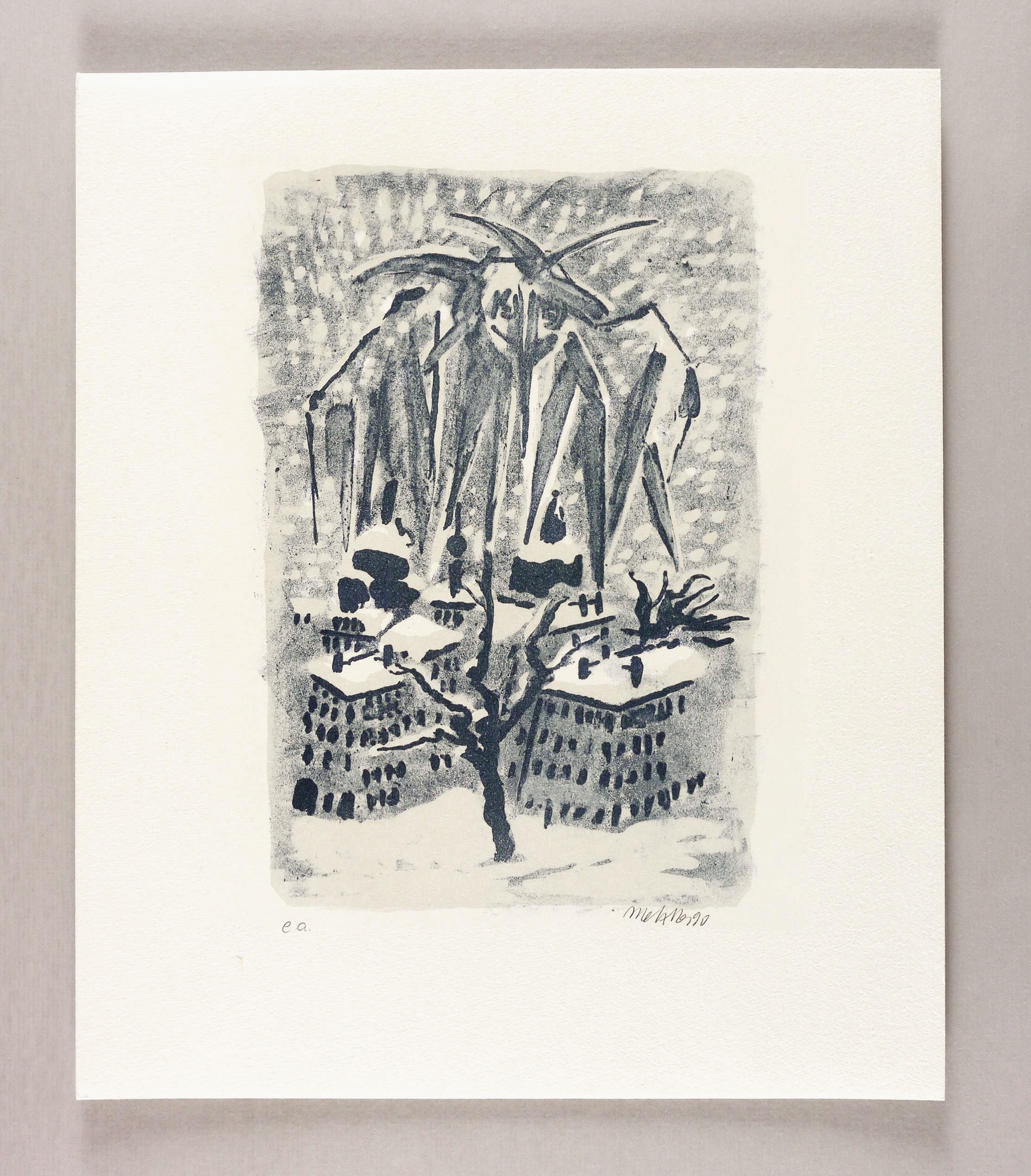 Rechts unten in Bleistift signiert und datiert: ″Metzkes 90″. Links Auflagenbezeichnung. Verso fremd bezeichnet. – Zu einem Gedicht von Matthias Claudius ″Ein Lied hinterm Ofen zu singen″. – Ohne Mängel. Sehr guter Zustand.