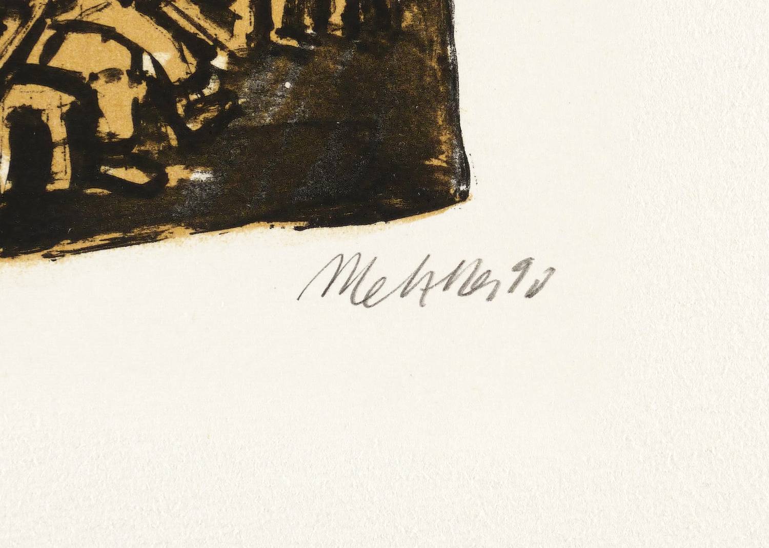 1990. Farblithografie / Pinsellithografie, in 3 Farben, auf festem hellchamois Velin. – Originale Künstlergrafik, von Harald Metzkes. – Künstlerexemplar (e.a.). – 23,0 x 16,8 cm (Darstellung / Druckbild), 36 x 31 cm (Blatt), 25,5 x 19,5 cm (Stein).