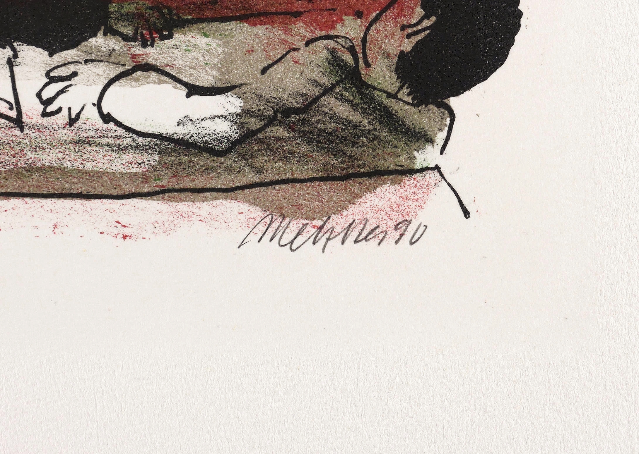 1990. Farblithografie / Pinsellithografie, in 4 Farben, auf festem hellchamois Velin. – Originale Künstlergrafik, von Harald Metzkes. – Künstlerexemplar (e.a.). – 24,5 x 18,5 cm (Darstellung / Druckbild), 36 x 31 cm (Blatt), 27,0 x 20,5 cm (Stein).