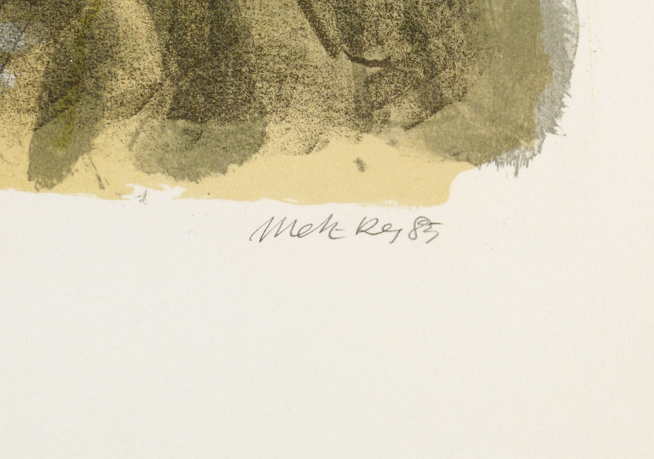1985. Farblithografie / Kreide- & Pinsellithografie, in 4 Farben, auf glattem hellchamois Velin. – Originale Künstlergrafik, von Harald Metzkes. – Auflage Exemplar Nr. XXI/XXV. – 26,5 x 26,5 cm (Darstellung / Druckbild), 37 x 35 cm (Blatt).