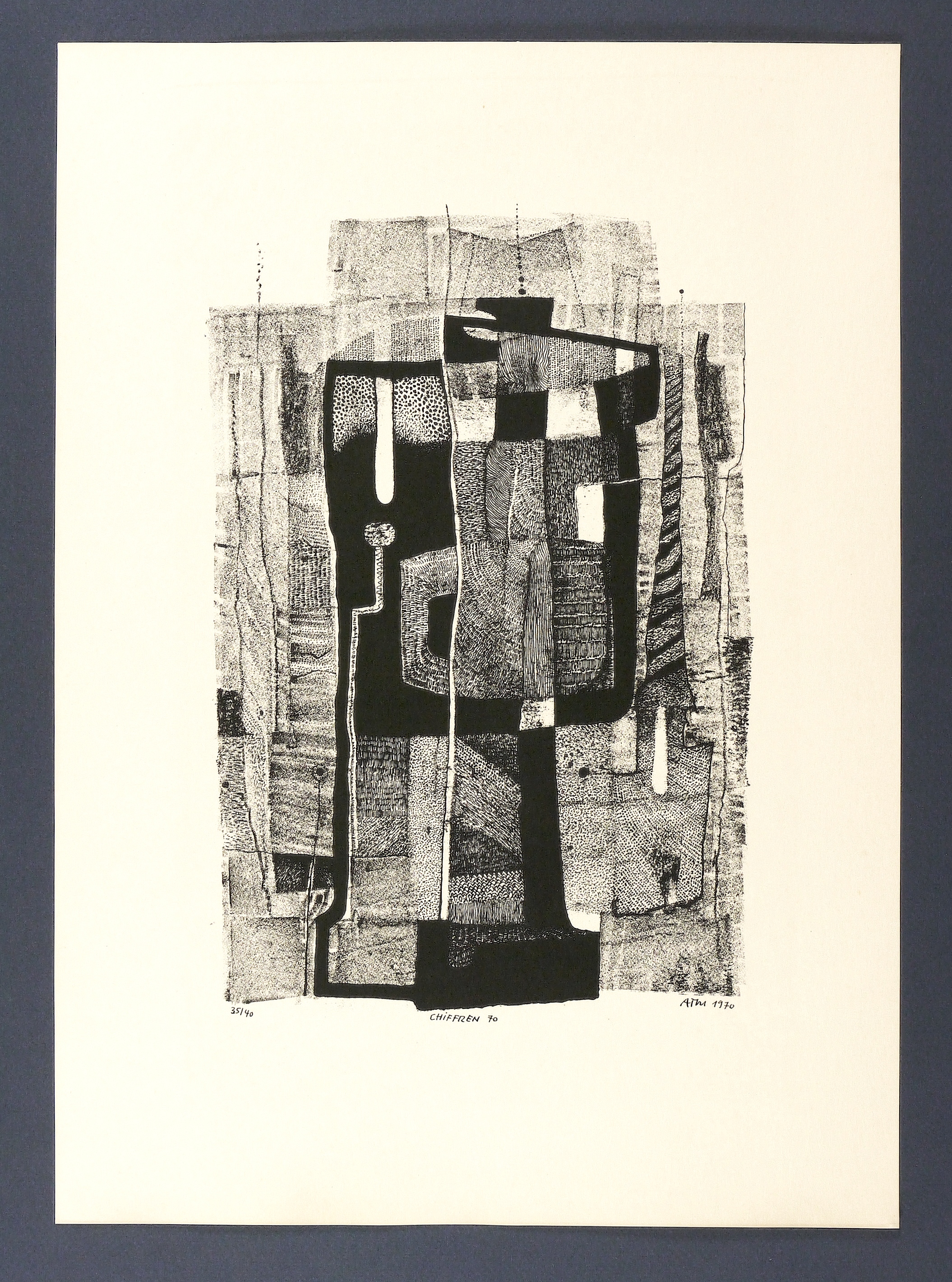 Mörstedt G 44. – Rechts unten in schwarzer Tusche signiert und datiert: ″ATM 1970″. Dazu links Auflagenbezeichnung: ″35/40″. Mittig Titel: ″CHIFFREN 70″. – Tadellos erhalten. Sehr guter Zustand.